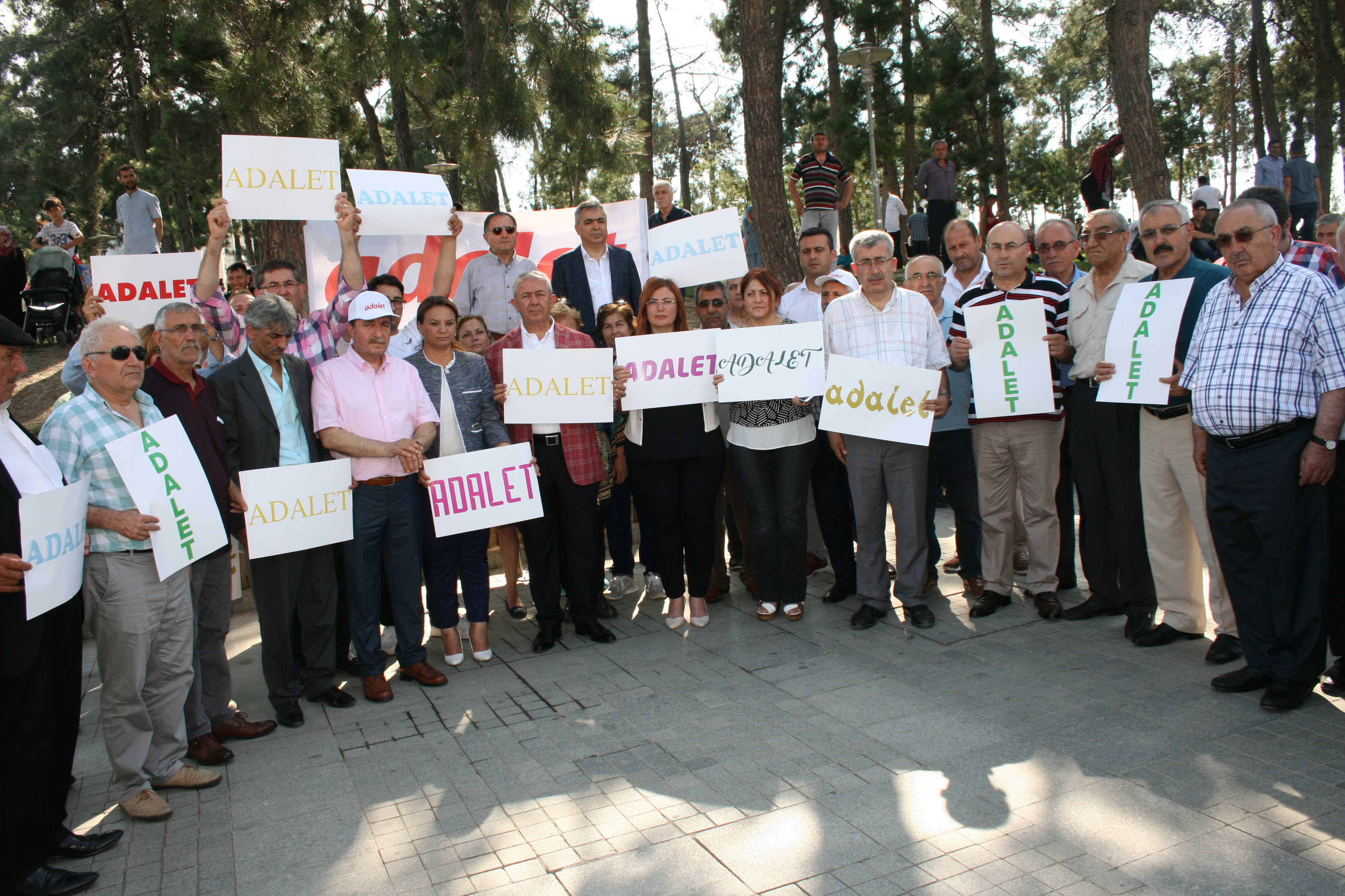 Bayramlaşmanın ardından partililer ilçe binasının önüne inerek CHP Genel Başkanı Kemal Kılıçdaroğlu tarafından başlatılan ‘Adalet Yürüyüşü’ne destek için ‘Adaleti Düşünmek İçin Duralım’ eylemi gerçekleştirdiler.