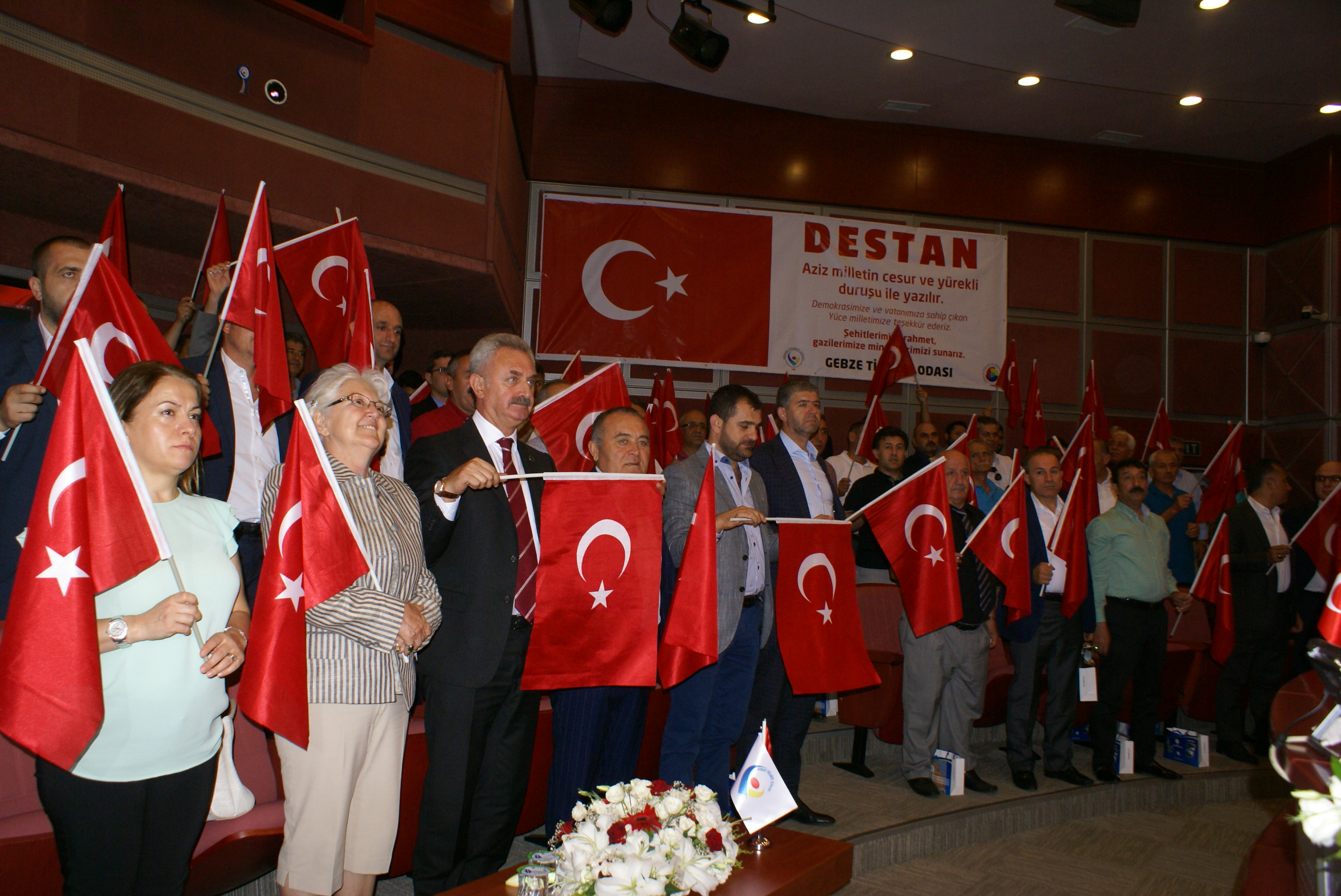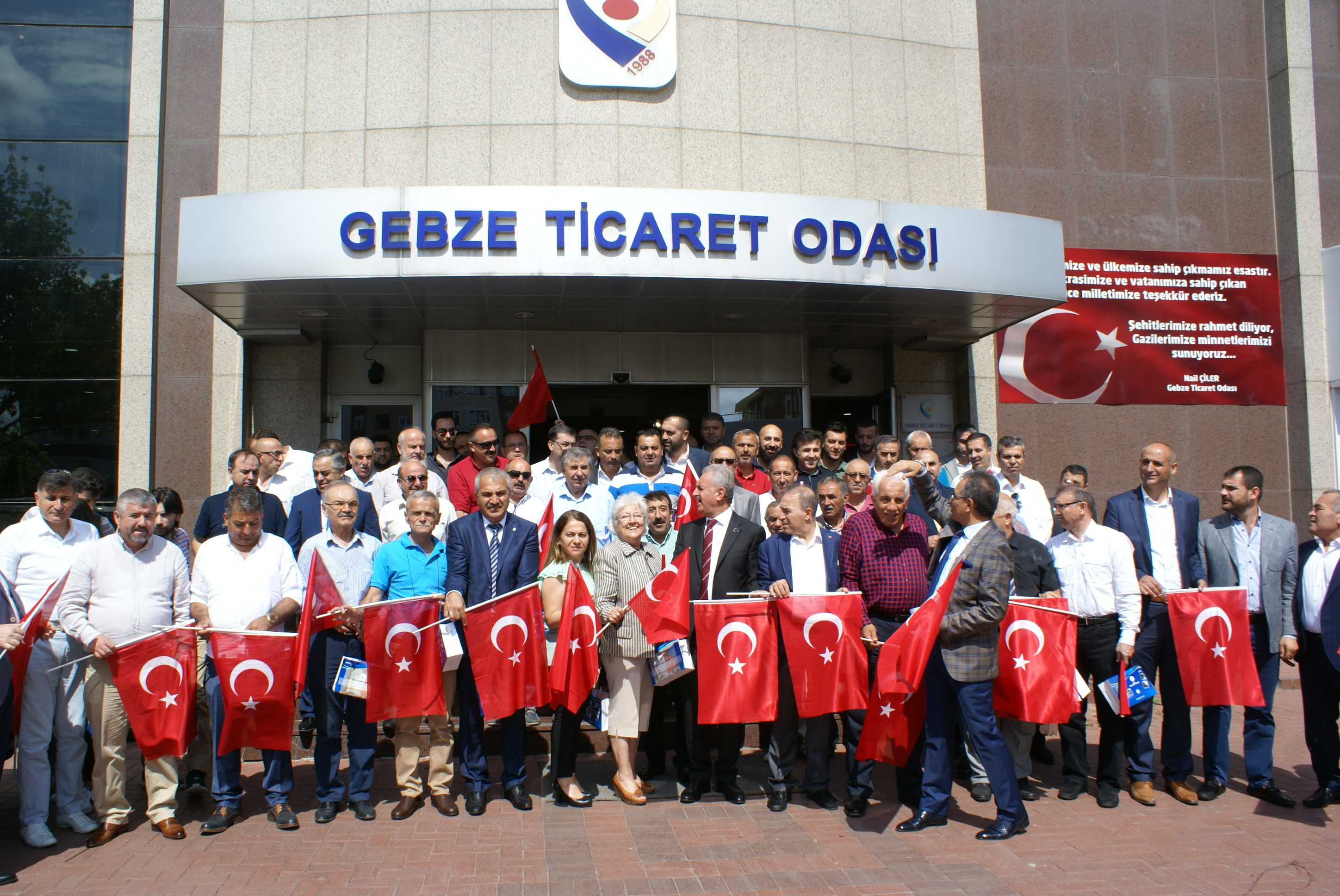 Halkımız, bu kalkışma hareketine karşı; sadece tanklara karşı durmadı, ekonomik refleksini de ivedilikle gösterdi. Darbe girişimine karşı finans sektörü olarak da çok sağlam duruldu. Merkez Bankası yönetiminin de süreci doğru okuyarak yerinde yönlendirmesiyle Türk iş dünyası bu olaydan fazla etkilenmeden yoluna devam etti. Bu sürecin iyi yönetilmesi ile mevduat çıkışı olmadığı gibi olağandışı kredi talebi de olmadı. Milletimiz elinde bulundurduğu 11 milyar dolar tutarındaki meblağı Cumhurbaşkanımızın çağrısı ile döviz satışı yaparak, kurlardaki artışı engelleyip, iş dünyasının olumsuz etkilenme ihtimalinin önüne geçti. Hükümetimizin iş dünyasıyla birlikte aldığı önlemler yaptığı reformlar sayesinde hızla toparlandık. Daha darbe girişiminin üzerinden bir yıl geçmeden ekonomide yüzde 5’lik büyümeyi yakaladık. Bu yılın ilk altı ayında iş dünyası olarak 1 milyon 200 bin insanımıza yeni istihdam sağlayarak, rekor kırdık. İhracatımızı arttırmaya başladık. Yabancı yatırımcıların güvenini yeniden kazanarak, 15 Temmuz sonrası toparlanma sürecini tamamladık. Bizler ülkemiz ve milletimiz için şimdi daha büyük bir azimle çalışarak, üreterek Türkiye’yi büyük hedeflerine taşıyacağız. 15 Temmuz’u asla unutmayacak, unutturmayacağız.” Dedi. Katılımcılara Türk Bayrakları ve Türk Bayrağı baskılı kupa hediye edildi ve 15 Temmuz resimlerinden oluşan sergi gezildi. Daha sonra günün anısına GTO önünde topluca fotoğraf çektirildi.