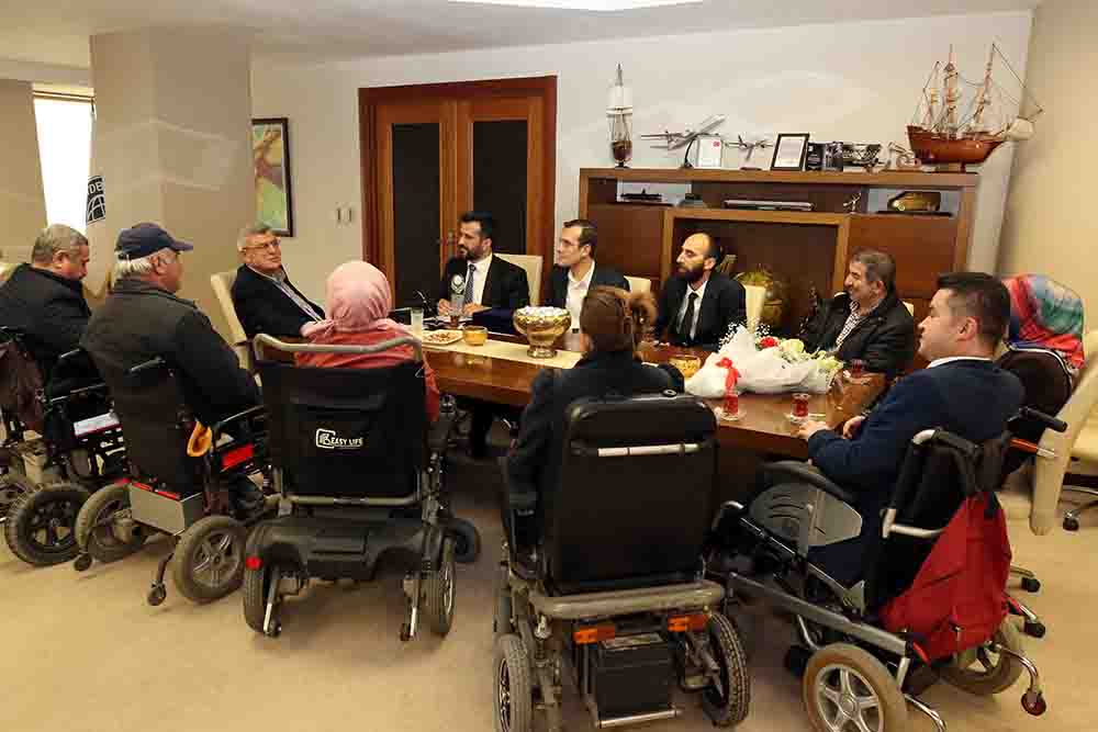 Başkan Karaosmanoğlu, Kocaeli Engelsiz Yaşam Derneği ve Yardım Severler Derneği temsilcilerini makamında ağırladı. Karaosmanoğlu, Engelsiz Yaşam Merkezi’nin 2017 yılında temelinin atılacağını da açıkladı.