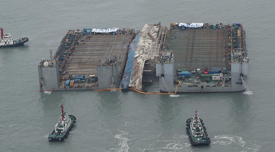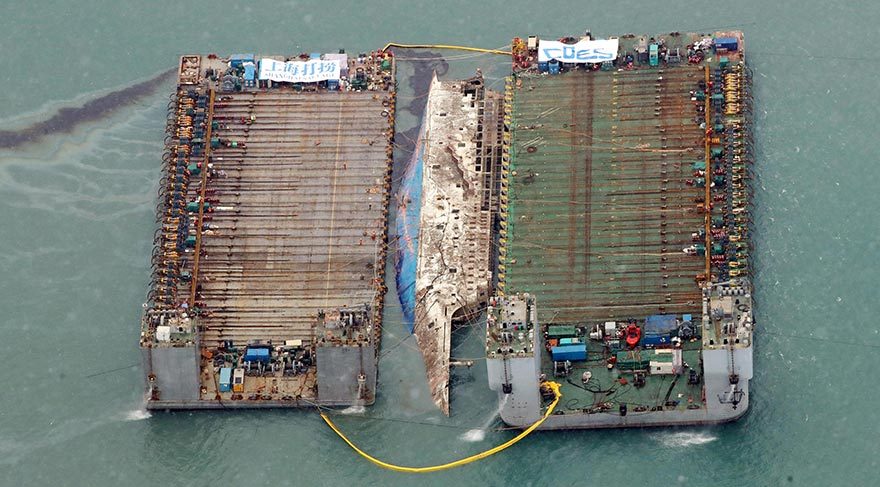 Güney Kore'deki kurtarma uzmanları, 3 yıl önce batan ve çoğu çocuk 304 kişinin hayatını kaybettiği feribotu nihayet kaldırmaya hazırlanıyor.Güney Kore’de 16 Nisan 2014’te 476 yolcu taşıyan Sewol Feribotu devrilerek batmış, yolculardan 304 kişi felakette hayatını kaybederken 172 kişi kurtarılmıştı.Rutin seferlerinden biri sırasında alabora olup batan Sewol Feribotu’nun, yapısal olarak kusurlu olduğu, fazla yüklenmiş olduğu ve hız sınırını aşarak ilerlediği söylenmişti.Jindo adası açıklarında batan feribot 44 metre derinliğe saplanıp kalmıştı. Kazada hayatını kaybedenlerin yaslı aileleri ise o zamandan beri feribotun kaldırılmasını talep ediyordu.Kazada hayatını kaybedenlerden 250’si, bir okul gezisinde olan çocuklardı ve mürettebat tarafından verilen talimatları uygulayarak kabinden çıkmayıp boğulmuşlar, bu sırada tüm mürettebat ise gemiyi terk etmişti.Kazadan bir ay sonra feribotun kaptanı ve 3 mürettebat cinayetle suçlanmış, gemiyi terk eden 11 mürettebat hakkında ise soruşturma başlatılmıştı.Acılı aileler kazadan beri geminin kaldırılmasını ve daha geniş kapsamlı bir soruşturma yapılmasını istiyordu.Kaza sonrasında 9 kişinin cesedine ulaşılamamıştı ve yetkiller de hala kayıp olan 9 cesedi bulmak için 3 yıldır uğraşıyordu.Çinli bir kurtarma şirketi feribotun gövdesine yerleştirilen 33 çelik halat ve 66 hidrolik krikoyla bir kurtarma çalışması denemeye başladı. Teknenin yan yatmış bölümünü kaldırıp alt tarafı su yüzeyinde eşitlenmeye çalışılıyor.Kaza, Güney Kore’nin eski başkanı Park Geun-hye için lekeleyici bir süreçti ve kendisini aklamayı başaramamıştı. Başkan Park, feribot kazası haberi geldiği anda doğru kararları verememekle suçlanmıştı.Kendisi bu suçlamaları reddetse de, kaza haberinin ilk duyulduğu andan ilk basın açıklaması yaptığı ana kadar geçen 7 saatlik sürede ne yapıyor olduğunu asla tam olarak açıklayamamıştı.Sewol Feribotu’nu kurtarma çalışmaları yaklaşık 75 milyon dolar tutuyor.