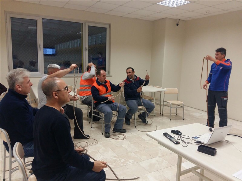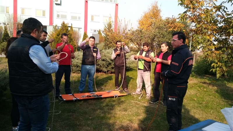 Temel afet bilinci, arama kurtarma, yangın, ipler düğümler, sedye ile yaralı taşıma ve sivil savunma servisi konularında verilen afet eğitimleri sonrası, yangın ve tahliye tatbikatları da icra edildi.