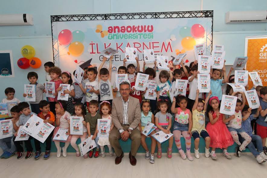 Anaokulu Üniversitesinin minikleri ilk karnelerini Gebze Belediye Başkanı Adnan Köşker’in elinden aldı. Anaokulu Üniversitesinin minik üniversitelileri...
