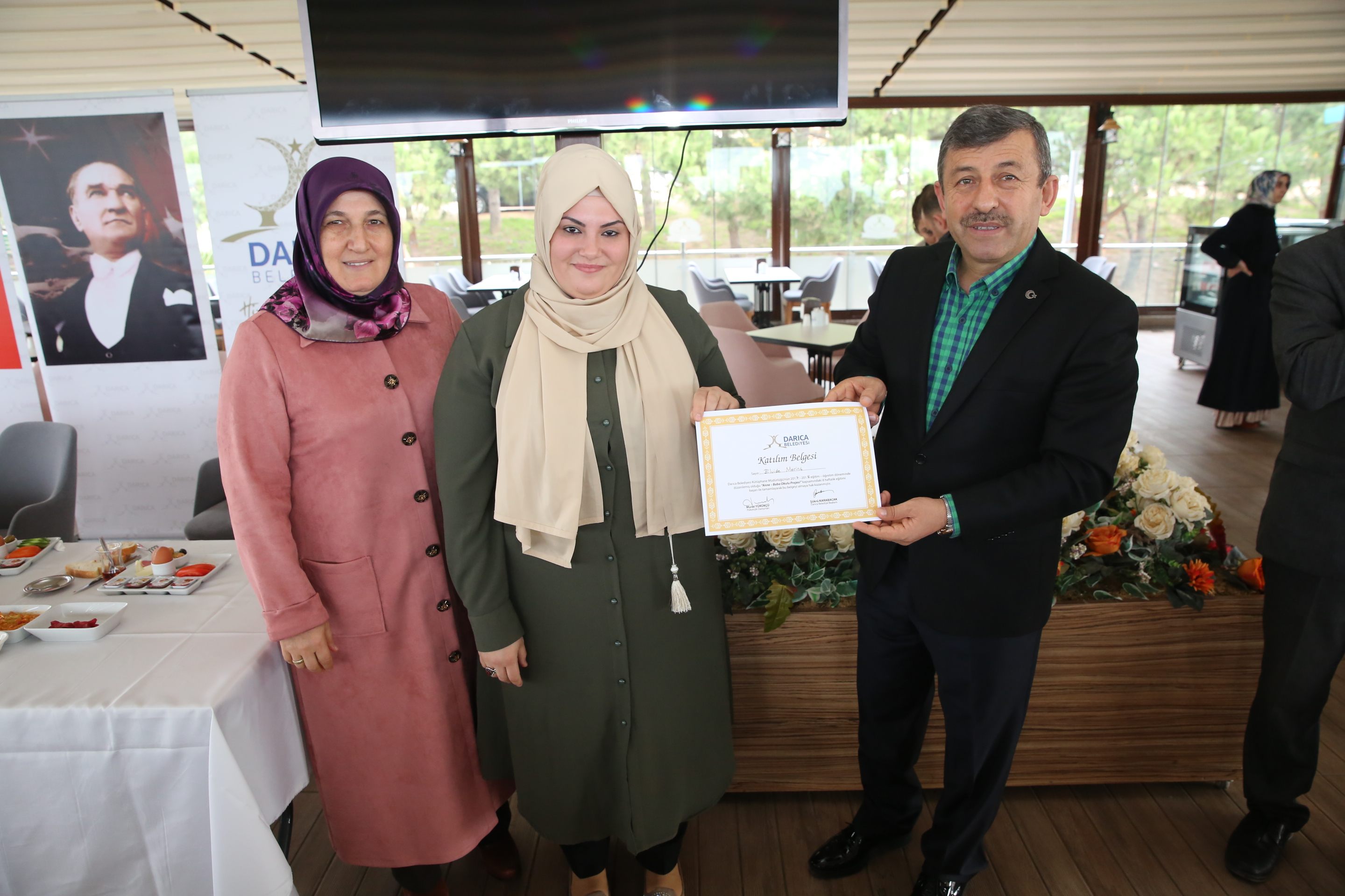 Eğitimlerin sonunda Darıca Belediyesi Teras Cafe&Restaurant’ta sertifika töreni düzenlendi. Sertifika törenine Eşi Teslime Karabacak’la birlikte katılan Darıca Belediye Başkanı Şükrü Karabacak yaptığı konuşmada; eğitimin, yetişmiş anne ve baba olmanın önemine dikkat çekerek sadece çocukların değil,