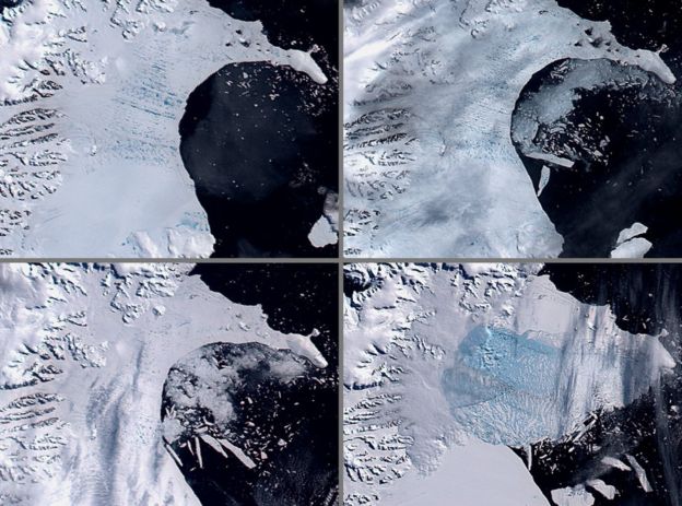 Larsen B buz sahanlığı 2002 yılında böyle bir kopuşu takiben tamamen çökmüştü.