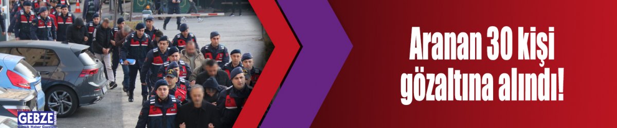 Kocaeli İl Jandarma Komutanlığına bağlı Gebze İlçe Jandarma Komutanlığı tarafından aranan kişilere yönelik gerçekleştirilen eş zamanlı operasyonda, 30 kişi gözaltına alındı.