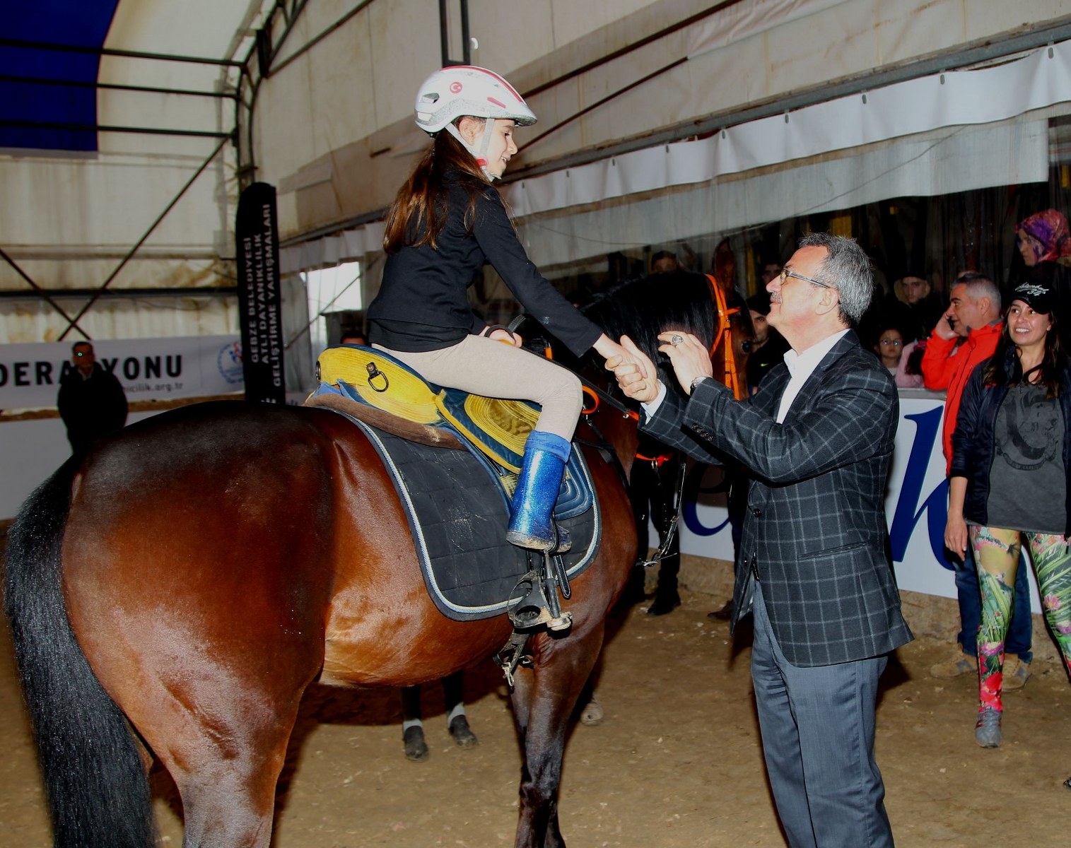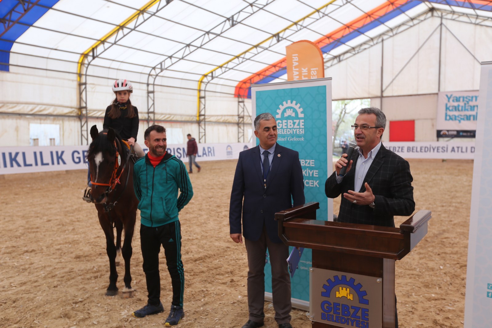 Kupa töreninde selamlama konuşması yapan Gebze Belediye Başkanı Adnan Köşker, yarışmacıları tebrik etti. Başkan Köşker, “Federasyonumuzla birlikte burada birçok organizasyon yaptık. Bugün yine onlardan birinin daha kupa töreninde sizlerle bir aradayız. Ben yarışmaya katılan tüm sporcularımızı tebrik ediyorum. Gebze’miz her geçen gün büyüyen gelişen bir kent. Tüm spor dallarında olduğu gibi binicilik sporunda da heyecanı, coşkuyu arttırmak istiyoruz, binicilik sporuna gönül verenlerin sayısını arttırmak istiyoruz.