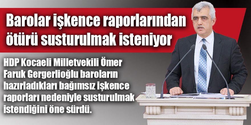 HDP Kocaeli Milletvekili Ömer Faruk Gergerlioğlu baroların hazırladıkları bağımsız işkence raporları nedeniyle susturulma istendiğini öne sürdü. Gergerlioğlu, “Millet bu meclise giremeyecekse adını değiştirin” dedi.