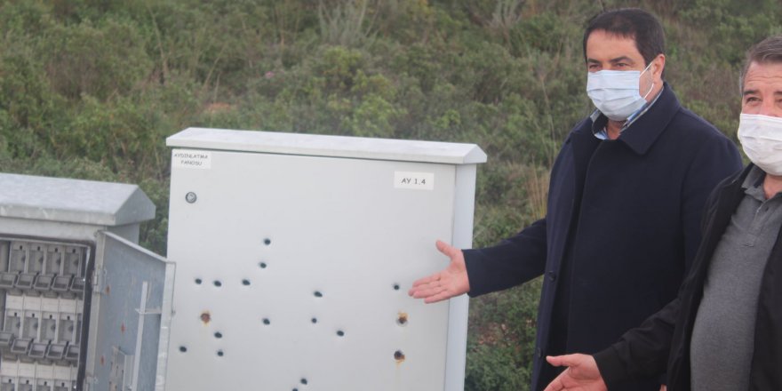 Gökhan Orhan ve beraberindeki heyet Beylikdağı’na tırmanışta kırılıp dökülen alet edavat ile birlikte kurşuna dizilen elektrik panosunu gösterdi.