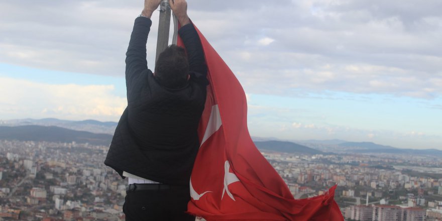 Tepede kaderine terk edilen ve yıpranan Türk Bayrağı ise