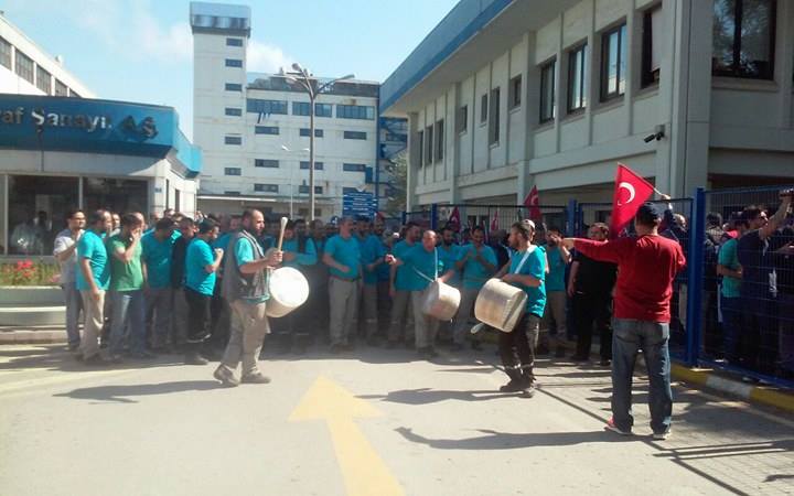 Birleşik Metal İş Sendikası Genel Başkanı Adnan Serdaroğlu grevin yasaklanmasına yönelik olarak işyerinde direnişe devam eden Cam Elyaf işçilerini ziyaret ederek destek verdi.