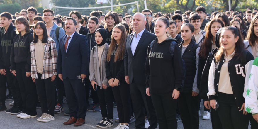 Bıyık öğrencilerle İstiklal Marşı okudu