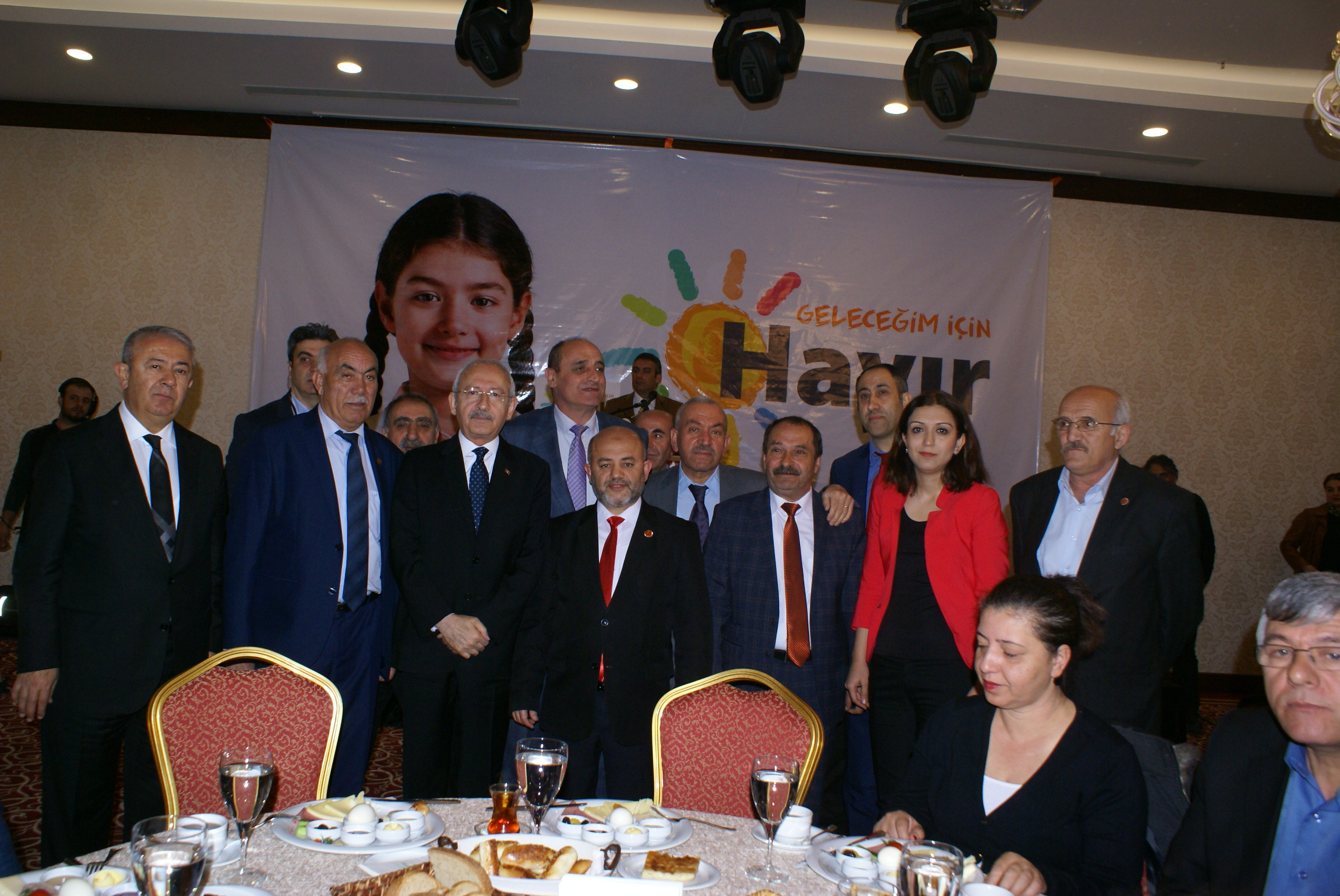 CHP’li hiç kimse konuşmadan direkt genel başkan Kılıçdaroğlu kürsüye davet edildi. Kılıçdaroğlu konuşmasında; “Muhtarların sorunlarını biliyorum. Bu sorunların çözümü TBMM. Muhtar da seçimle geliyor. Bir siyasi parti kimliği olmaksızın mahallenin güvenini kazanarak geliyor. Ancak sosyal güvenlik primini devlet ödemiyor. Sizin sorunlarınızın farkındayız. Nasıl çözülmesi gerektiğini biliyoruz.” Dedi. Referandum süreci bir seçim veya bir parti ile ilgisi yok. Siyasi kimliklerimizi bir tarafa bırakacağız. Bu değişiklik bizim hangi derdimizi çözüyor diye tartılacağız. Partili kimliğimi bir tarafa bırakıyorum. Sizler gibi bir vatandaş gibi konuşuyorum. Bütün doğruları anlatmaya çalışacağım. Muhtar olarak değil, sade bir vatandaş olarak cumhurbaşkanı taraflı mı tarafsız mı olmalı mı? Cumhurbaşkanı taraflı olmalı diyorsanız gidip evet oyu kullanabilirsiniz. Yok, aksi olacak diyorsanız da hayır oyu vereceksiniz.” Dedi.Mevcut durum ve referandum sonrası oluşabilecek durum ile ilgili de bilgi veren Kılıçdaroğlu; “Cumhurbaşkanı yurt dışına çıktığında veya vefat ettiğinde TMBB başkanı mı yoksa seçimle gelmeyen biri mi temsil etmeli mi? Buna karar vereceğiz. Bunun partilerle ilgisi yok. Oturup düşünüp vicdan terazisinde tartıp oy kullanacaksınız.” Dedi