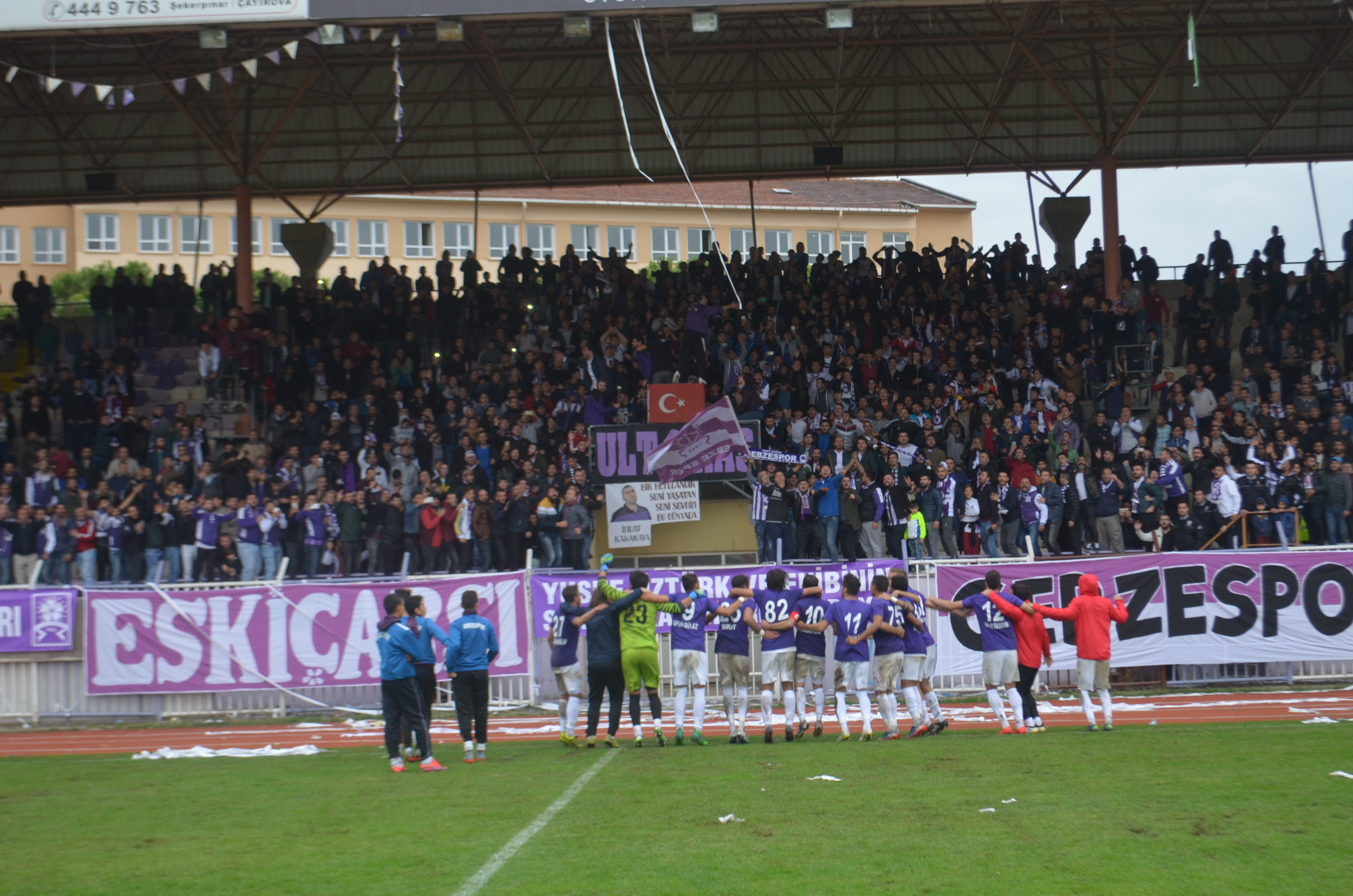 Maçın bitiş düdüğüyle birlikte taraftarlar takımı tribünlere çağırarak galibiyeti birlikte kutladı. Tüm camianın sevinci görülmeye değerdi.