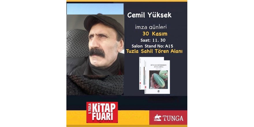 Tüm Emekli-Sen Gebze Şube Başkanı emekli öğretmen Cemil Yüksek, “Dünyayı Sığdırırdın Avuçlarına” adlı ilk kitabını Tuzla 5’nci Kitap Fuarı’nda imzalayacak. Yüksek, Tuzla sahil alanındaki fuara 30 Kasım Çarşamba günü saat 11.30’da Salon Stand No: A15’te konuk olacak. İlk şiir kitabı büyük ilgi gören ve beğeni toplayan Cemil Yüksek’in “Sesimi Kendim Duymam” adlı ikinci kitabı ise bir süre sonra yayında olacak. Yüksek tüm dostlarını ve şiirseverleri önümüzdeki çarşamba günü Tuzla Kitap Fuarı’ndaki standında ağırlamaktan büyük mutluluk duyacağını söyledi,