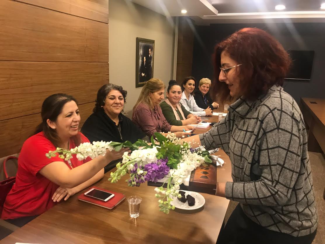 CHP Kadın Kolları önceki dönem Başkanlarından Hülya Güreli Yolcubal, İl Kadın Kolları Başkanı Songül Kaya ve İlçe Kadın Kolları Başkanlarına küçük bir jestte bulundu. Toplantının başında tüm başkanlara çiçek dağıtan Yolcubal, hem yeni dönemin hayırlı olmasını diledi, hem de Türk Kadının Mecliste temsil edilmesinin 83. yılını kutladı. Başkan Kaya ve İlçe Kadın Kolları Başkanları, Yolcubal’a yaptığı bu jestten dolayı teşekkür ettiler.