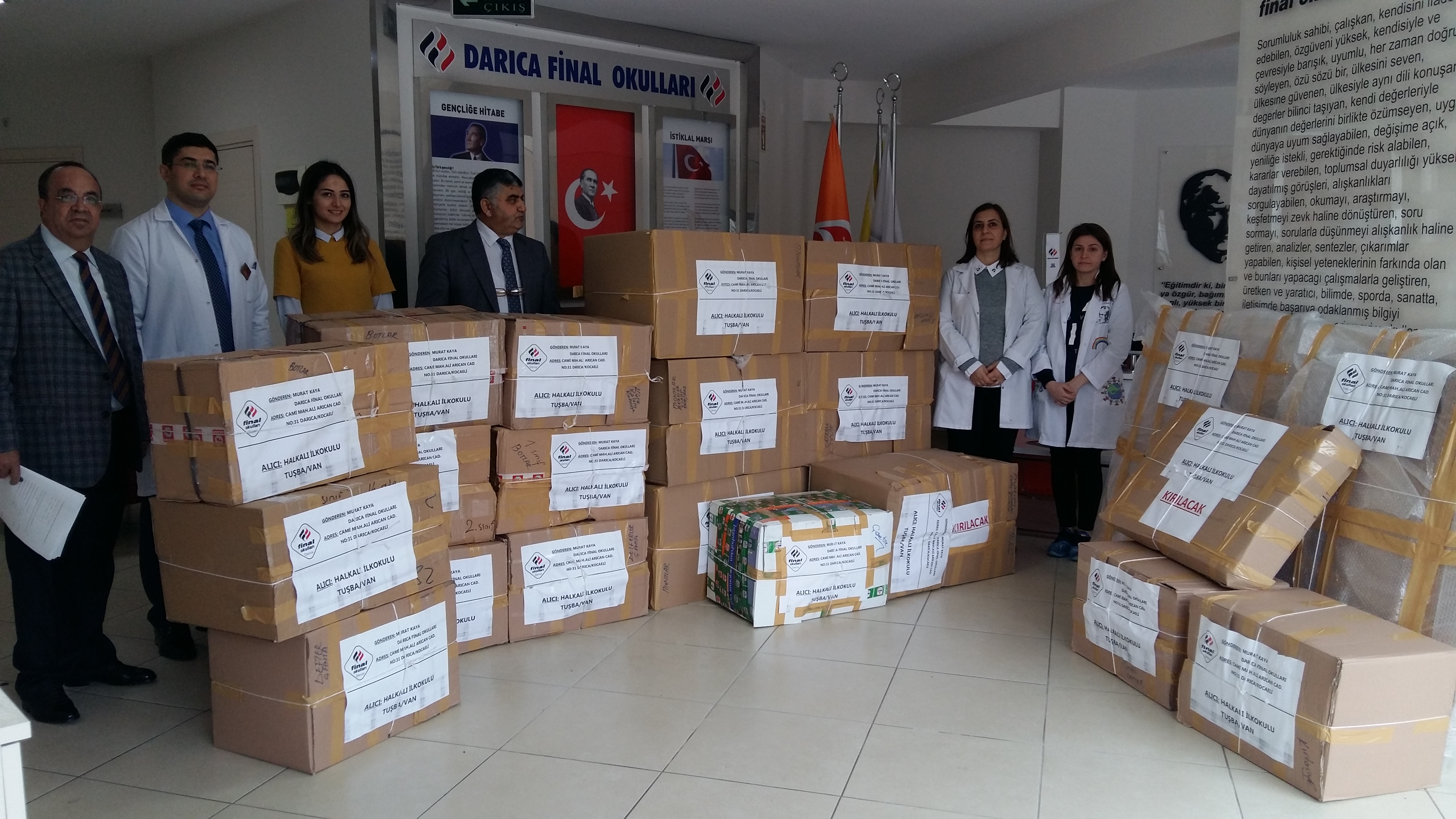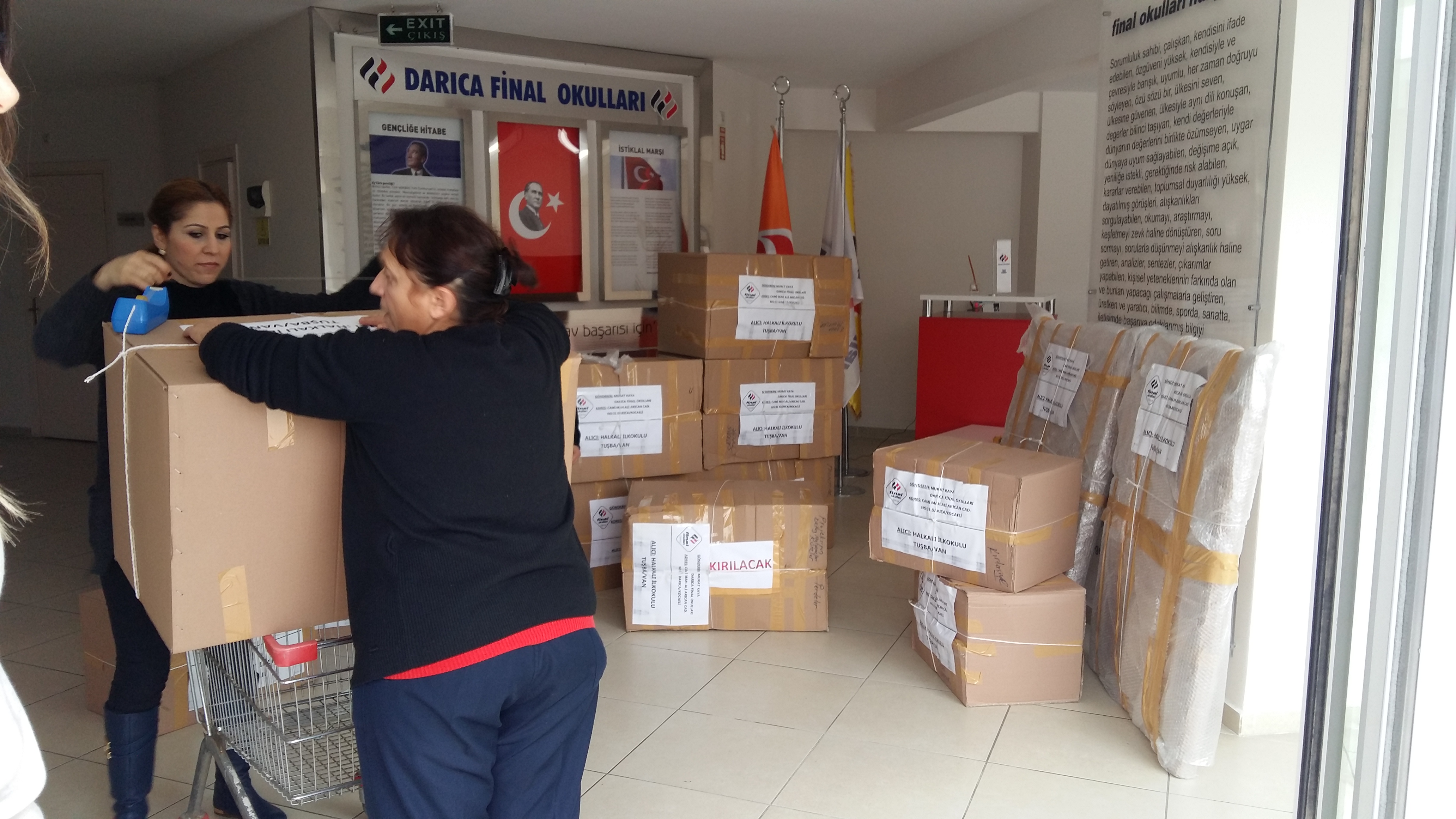 Kardeş okul Tuşba Halkalı İlkokuluna Atatürk portreleri, A4 kağıt, Oyun hamurları, okuma setleri, öykü kitapları, projeksiyon cihazı, panolar, perdeler, haritalar , dünya modelleri, ,insan modeli ,deney malzemeleri , satranç takımları , mangala , tangram vb. zeka oyunu takımları ,voleybol ,basketbol ve futbol topları , beden eğitimi oyun araçları , defterler , Tüm kırtasiye malzemeleri , temizlik ihtiyaç malzemeleri, tüm okul öğrencilerine montlar , botlar, bereler , okul çantaları , oyuncakları içeren geniş kapsamlı 29 kolilik ürünler kargo yoluyla gönderildi. Kardeş okulu ziyaret ve kampanyanın teslim töreninde hazır bulunmak amacıyla Darıca Final Okulları Kurucu Temsilcisi ve Genel Müdürü Murat Kaya, Yönetim Kurulu Üyesi ve Mali Direktör İsmail Ramazanoğlu, Yönetim Kurulu Üyesi ve Ortaokul Müdürü Murat Zengin Pazartesi günü Van ‘a gidiyorlar.