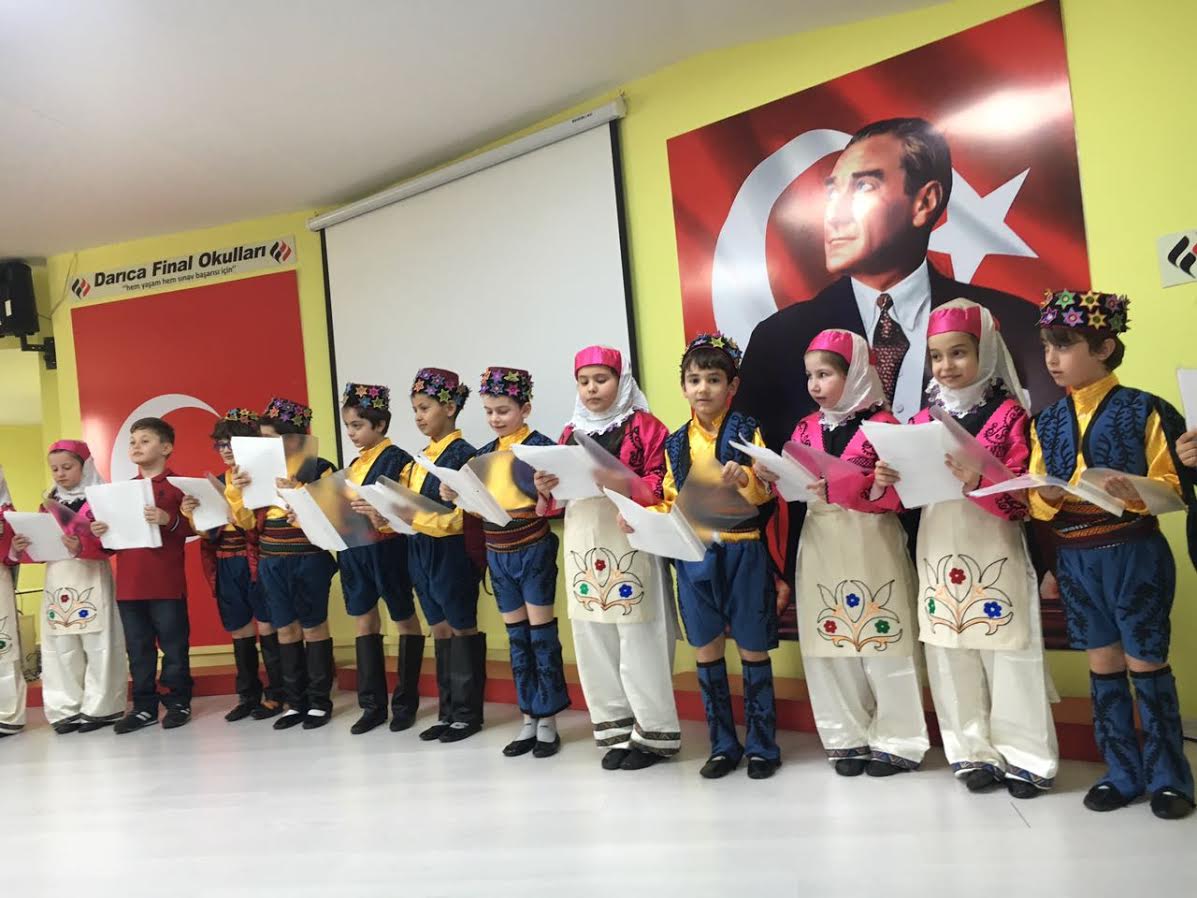 Darıca Final Okullarında 23 Nisan Ulusal Egemenlik Ve Çocuk Bayramı Büyük bir coşku ile kutlandı. Programın sunuculuğunu 4/A Sınıfı öğrencilerinden Azad Deli ve Nehir Elçin yaptı. Açılış konuşmasını 1/A Sınıfı öğrencilerinden Zeynep Neşe Akıncılar yaptı. Günün anlam ve önemini belirten konuşmasını 1.sınıf Öğretmeni Duygu Gürler yaptı. Programın akışında 4/A Sınıfı öğrencileri İngilizce Öğretmeni Şeyma Şan ve Fransızca öğretmeni Koray Karagün rehberliğinde İngilizce –Fransızca olarak hazırladıkları Çocuk hakları sözleşmesi maddelerini okudular. 2/A 3/A 4/A sınıfı öğrencileri, sınıf öğretmenleri Şafak Kaya, Yakup Aksoy ve Gülden Gündüz rehberliğinde 23 Nisan ile ilgili şiirlerini okudular. 2/A ve 3/A Öğrencilerinin Folklor Öğretmeni Hatice Eriç önetiminde sergilemiş oldukları folklor gösterisi büyük bir beğeni topladı.