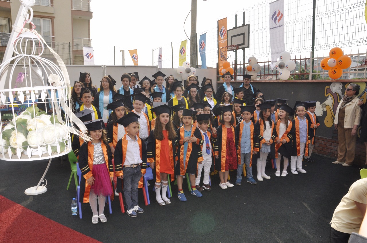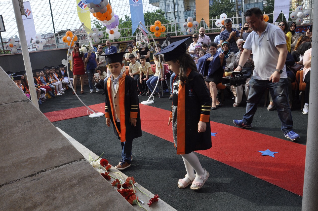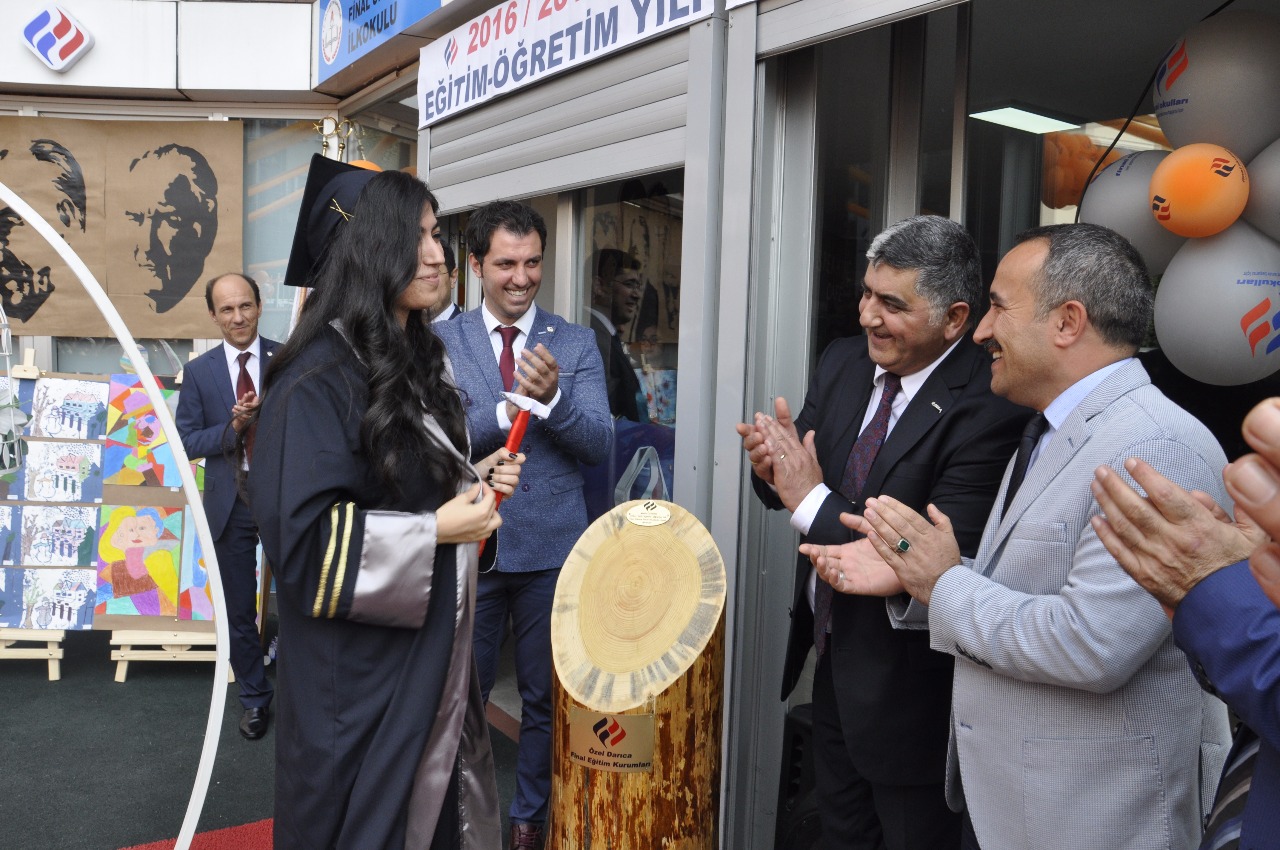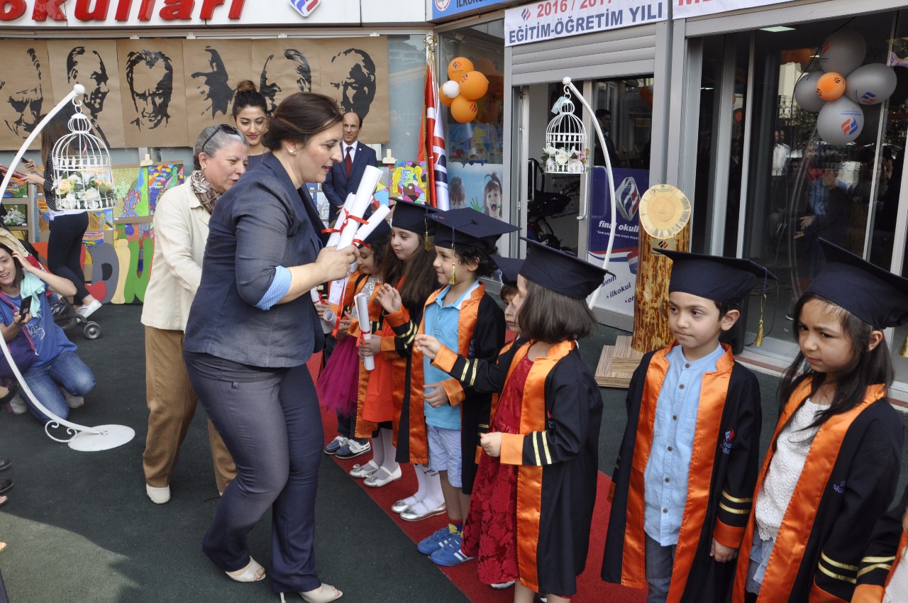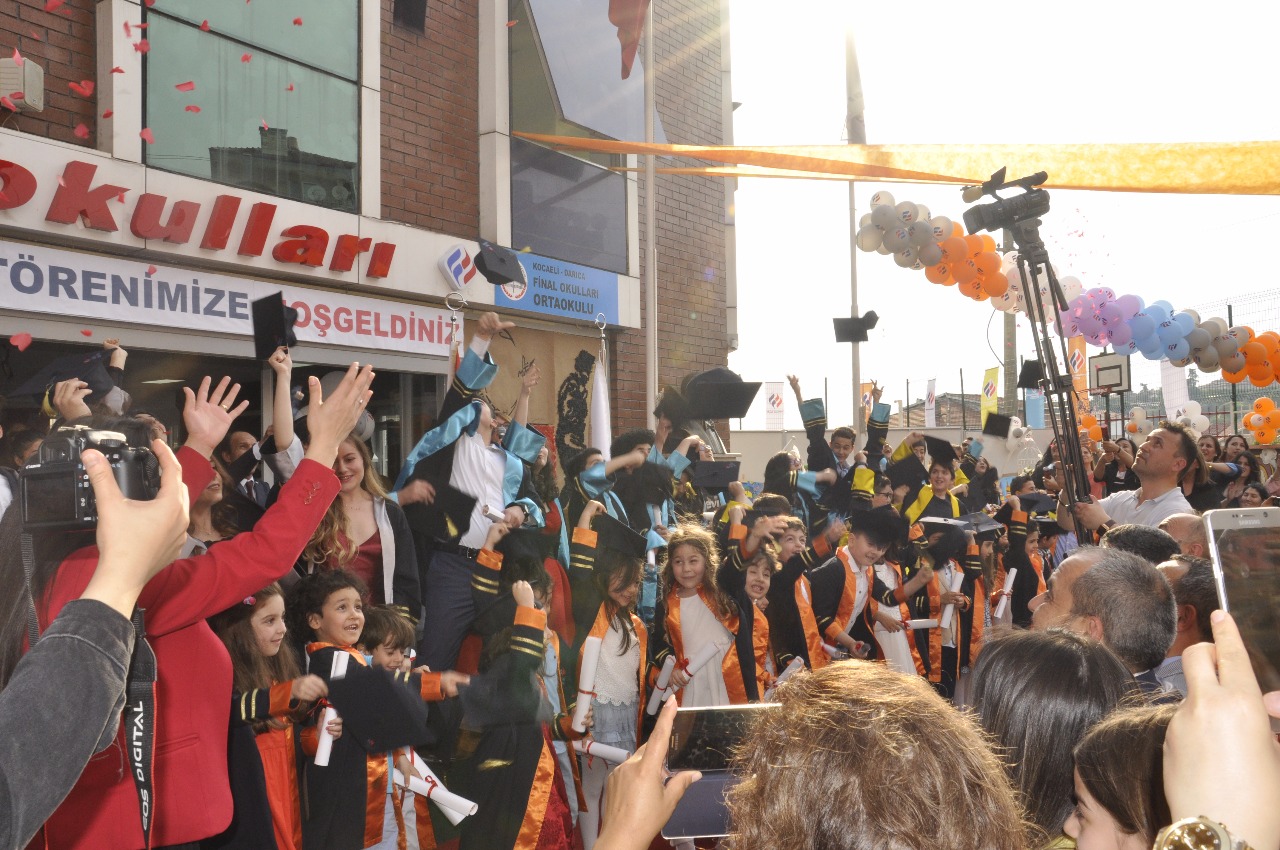 Tüm sınıflar profesyonel bir ciddiyetle Atatürk büstüne çiçeklerini koyarak saygı selamlamalarını tamamladıktan sonra saygı duruşu akabinde coşkuyla İstiklal Marşı okundu. Genel Müdür Murat Kaya ve Milli eğitim şube müdürü Veysi Gültekin 'in konuşmaları sonrası bayrak ve flama devir teslim töreni gerçekleşti. Anadolu Lisesi Birincisi Melis Öztürk yaptığı konuşmasıyla duygulu anlar yaşattı. İsmail Ramazanoğlu, Gülden Gündüz, Murat Zengin, Şevket Ababay, Ceyda Ramazanoğlu sınıf öğretmenleri ile birlikte mezuniyet belgelerini takdim ettiler ve daha sonra FİNAL okulları marşı coşkuyla okundu. Mezuniyet andı kurumsal kültür içerikli hep birlikte okundu. Kep atma töreni ile sevincin ve hüznün yaşandığı bu mutlu atmosferden katılımcı tüm veliler büyük bir memnuniyetle tören bitiminde tebriklerini sunarak ayrıldılar.
