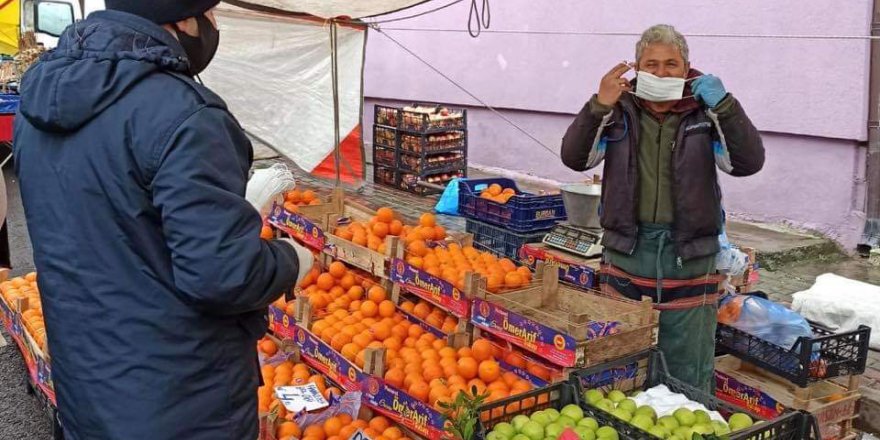 Bizlerde ilçemizde kurulan pazarlarda dezenfektan standımızın yanı sıra maskesi olmayan vatandaşlarımıza maske dağıtımı gerçekleştiriyoruz.”