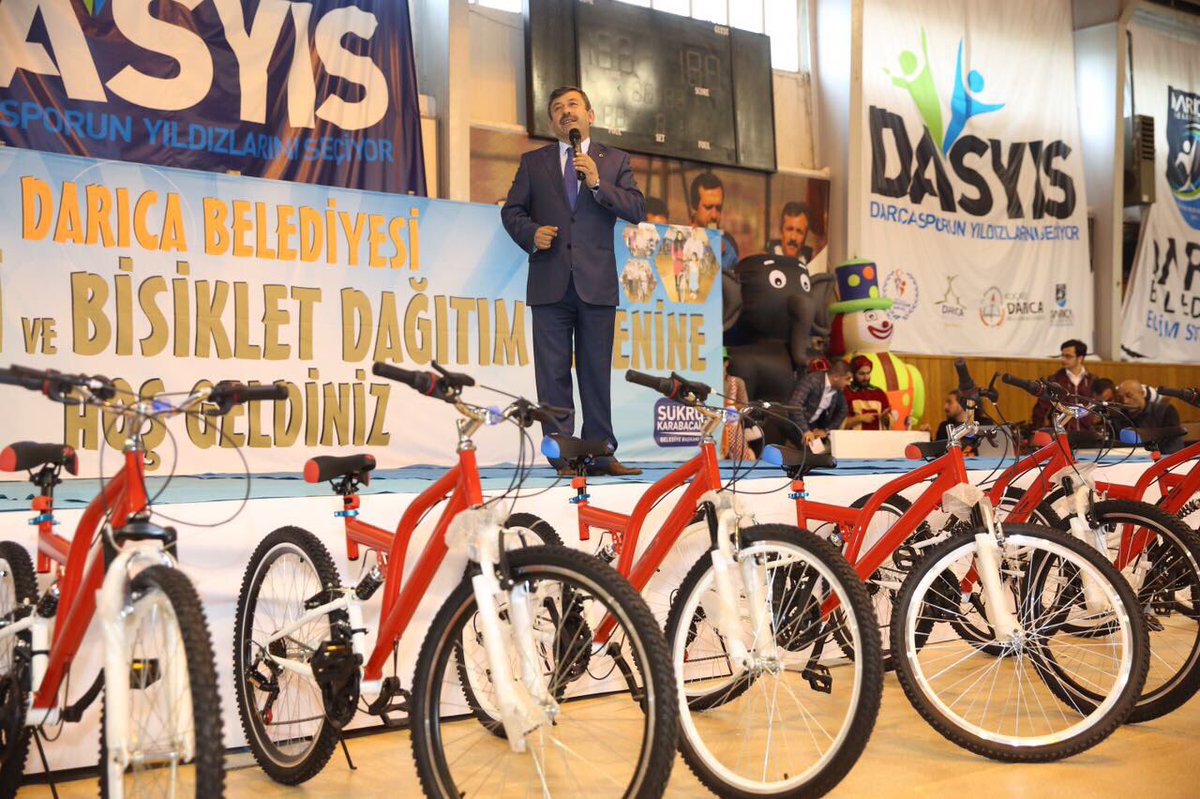 Darıca Belediyesi ilçe genelinde 4. Sınıfa giden ve sınıflarında ilk üçe giren öğrencilere bisiklet dağıttı. Darıca Belediyesi Kapalı Spor Salonu’nda yapılan bisiklet dağıtım törenine Darıca Belediye Başkanı Şükrü Karabacak, Darıca İlçe Milli Eğitim Müdürü İsmail Oğuz, Darıca Belediye Başkan Yardımcıları, öğretmenler, veliler ve öğrenciler katıldı.