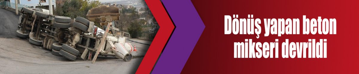 Dönüş yapan beton mikseri devrildi
