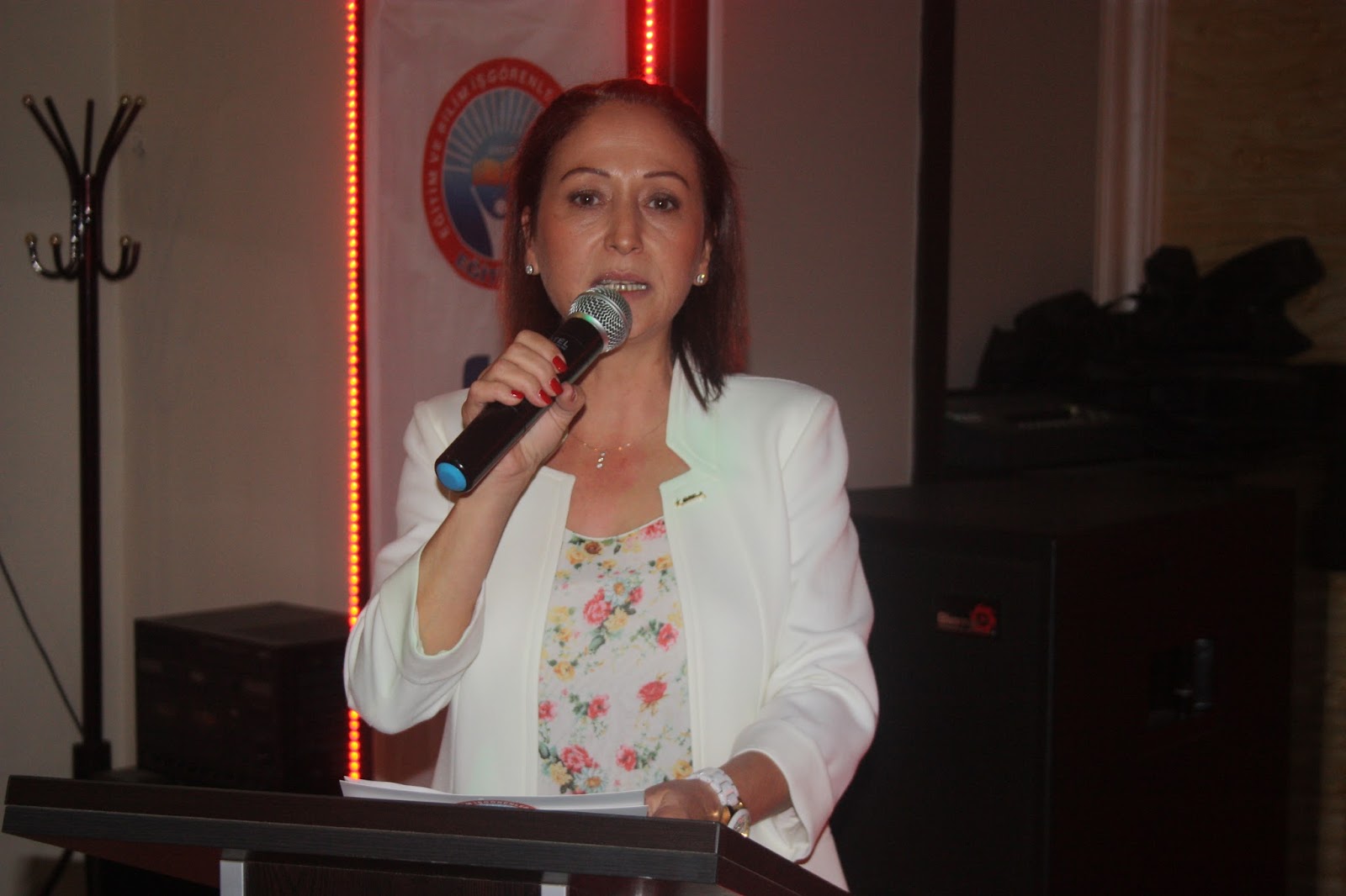 Gecede açılış konuşması Şube Sekreteri Meral Akkaya tarafından yapıldı. Akkaya, “İzmir’in dağlarında çiçekler açtıranlara selam olsun. Selam olsun Cumhuriyet sevdalılarına” diyerek selamladı. Akkaya günün anlam ve önemine değindiği kısa konuşmasını, “Yarını bayram yapan herkesin ruhu şad olsun. Yarınları bayram yapacaklara ilham olsun. Cumhuriyet Bayramınız kutlu olsun” diye tamamlayarak mikrofona Şube Başkanı Bülent Metin’i davet etti.