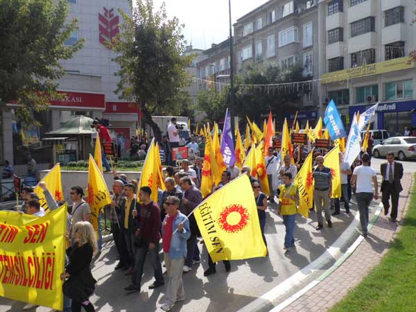 Açıklamada; “Siyasi iktidarın darbe fırsatçılığı sonrasında eğitim ve yükseköğretimde ihraç edilen öğretmen, akademisyen ve idari personel sayısı toplamda 39 bin 640’tır. Hiçbir yargılama yapılmadan, kendini savunma hakkı bile tanınmadan, tamamen idari ve siyasi tasarruflarla 40 bine yakın insanın işinden, ekmeğinden edilmesi kabul edilemez. OHAL KHK’ları ile ihraç edilen 39 bin 640 kişiden sadece 1.542’si (%3,9) Eğitim Sen üyesidir. Bu doğrultuda, Eğitim-Sen’li üyeler büyük bedeller ödemiştir. Bu duruma en büyük, en canlı örnek Nuriye GÜLMEN ve Semih ÖZAKÇA süresiz açlık grevi yaparak canlarını ortaya koymuşlardır. Nuriye GÜLMEN ve Semih ÖZAKÇA’nın açlık grevini sürdürdükleri evlerinden geceleyin baskın yapılıp, kapıları kırılarak, ilk önce gözaltı, ardından da tutuklanmışlardır. Olması gereken Nuriye GÜLMEN ve Semih ÖZAKÇA’nın işlerine neden son verildiğinin delilleri ile birlikte açıklanması, onların itirazlarının hukukun üstünlüğü ilkesi uyarınca değerlendirilmesi ve bir an önce işlerine iade edilmesidir.” Denildi.