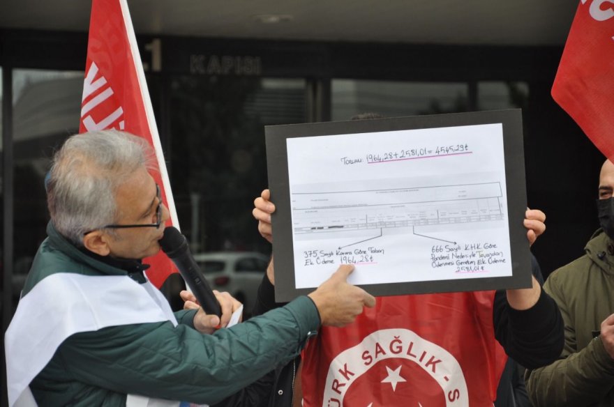 KOÜ Eğitim ve Araştırma Hastanesinde görev yapan çalışanların Ek Ödemelerinin tavandan ödenmesi için Türk Sağlık Sen Kocaeli Şube Başkanı Ömer Çeker hastane önünde basın açıklaması yaptı.