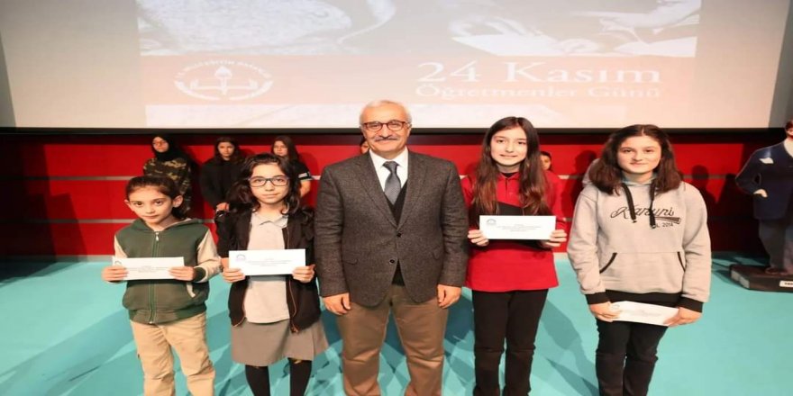 24 Kasım Öğretmenler Günü nedeniyle öğrenciler arasında düzenlenen yarışmaların ortaokul kategorisi şiir dalında birinciliği Duru Rojda Koç, “Tut elimden öğretmenim” adlı şiiriyle edindi