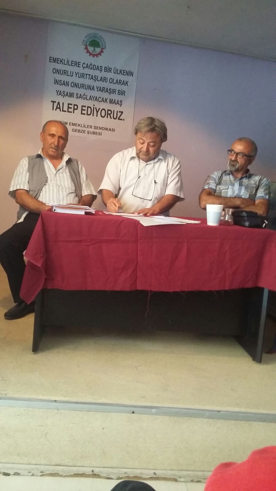 DİSK/Tüm Emekliler Sendikası (EMEKLİSEN) Gebze Şubesi’nin 1. Olağan genel kurulu şube lokalinde dün gerçekleştirildi. Divan başkanlığını BİLKAR Başkanı Serdar Dikkatli, divan üyeliklerini Zeki Kahraman ve Şenel Uzun yaptı. Üyelerinin katılımıyla gerçekleşen kongre Cemil Yüksek başkanlığında tek liste ile yapıldı. Yönetimde Cemal Erkan, Mevlüt Çiftçi, Aşur Bayraktar ve Efendi Doğru yer aldı. Kongre ye Eğitim Sen Gebze Şube Başkanı Oğur Aydın, Birleşik Haziran Hareketi’nden Buğra Aydoğan, Dersimliler Derneği Başkanı Murat Ozan katıldı.