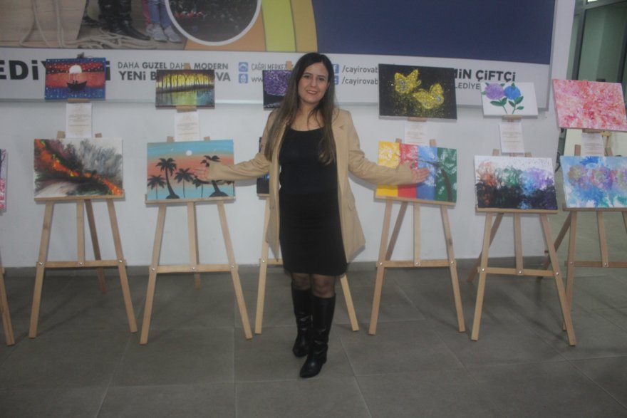 Öğretmen Songül Kurt Komaç, “Her bir resmimizde fırçadan ziyade kulak çöpü, alüminyum folyo, bulaşık süngeri, mandal, tarak, kurutma makinesi, balon ve pipetlerle resimlerimizi yaptık” dedi.
