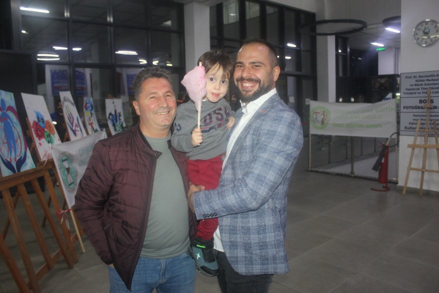 Bir diğer tarafta Muhammet Mustafa Kara, Elif Ada Hanedar, Nehir Albayrak, Irmak Can, Yakup Keskinoğlu, Burak Palat, Caner Kurşun, Fazlı Yaz, Emir Talha Aydın ve Cud El Vaki adlı ilkokul seviyesindeki üçü kız yedisi erkek 10 özel öğrencinin resimleri sergilendi. 15 ay kadar önce resme başlayan öğrenciler, eserleriyle üçüncü kez görücüye çıkarken parmak ısırttı. Resim öğretmenleri Songül Kurt Komaç çalışmalarını şöyle izah etti: