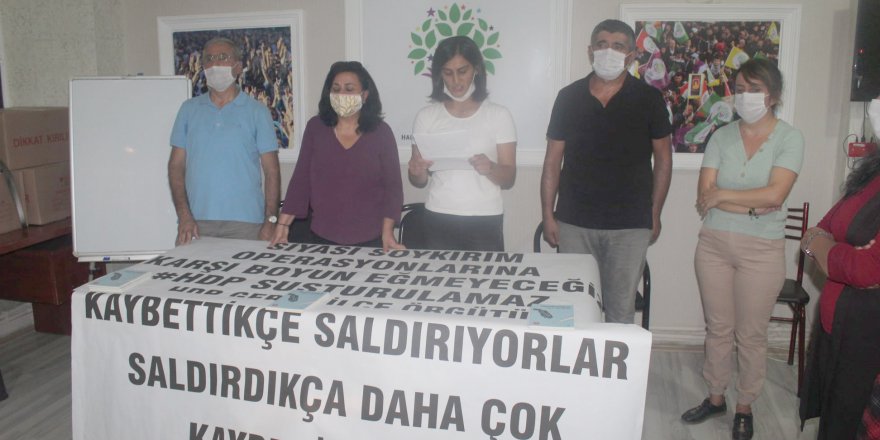 “Aralarında Kars Belediyesi Eşbaşkanımız Ayhan Bilgen ve önceki dönem vekilimiz Sırrı Süreyya Önder ve aynı dönemde partimiz MYK’sında yer almış ya da yöneticilik yapmış olan pek çok arkadaşımızın da bulunduğu 82 saygın siyasetçi, sivil toplumcu dün (27 Eylül) sabah gözaltına alındı. Bu gözaltılar partimize yönelik siyasi kırımın bir parçası olup, AKP – MHP iktidarının adım adım faşismi inşa etme girişimlerinin bir ayağıdır.