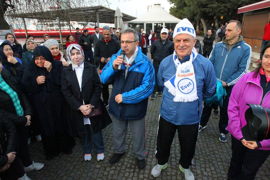 Eskihisar Sakızağacı’nda yürüyüşe katılan hanımlar ve sahilde bulunan vatandaşlara karanfil takdim ederek 8 Mart Dünya Kadınlar Günü’nü tebrik eden Kocaeli Büyükşehir Belediye Başkanı İbrahim Karaosmanoğlu ve Gebze Belediye Başkanı Adnan Köşker katılımcılara teşekkür etti.