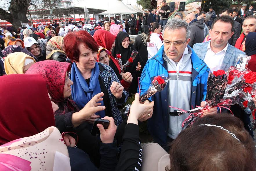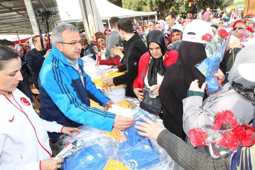 8 Mart Dünya Kadınlar Günü vesilesiyle 3 bini aşkın Gebzeli kadının katılımıyla Eskihisar sahilinde düzenlenen sağlıklı yaşam yürüyüşü ve programına katılan Kocaeli Büyükşehir Belediye Başkanı İbrahim Karaosmanoğlu ve Gebze Belediye Başkanı Adnan Köşker, konukların Dünya Kadınlar Günü’nü tebrik ederek karanfil takdim etti.