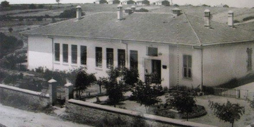 O yıllarda tek katlı olan okulun küçük bir bahçesi olduğu görülüyor.