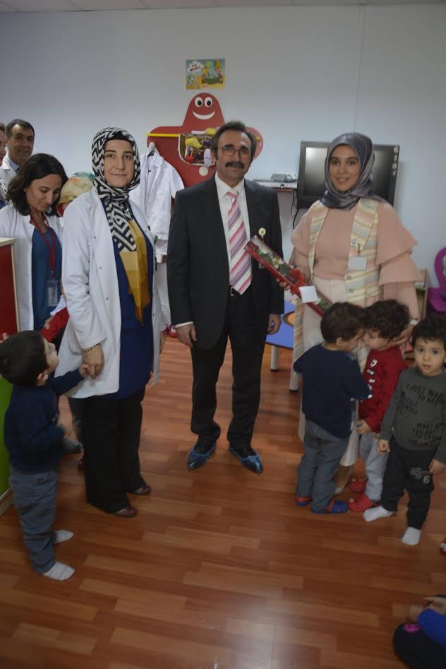 Darıca Farabi Devlet Hastanesi Yönetimi her yıl olduğu gibi 24 Kasım öğretmenler günü velilerimiz ile birlikte coşkulu bir şekilde kutladı. Kurum bünyesinde bulunan Darıca Farabi Devlet Hastanesi Kreş ve Gündüz Bakımevi; 5 öğretmen 2 yardımcı personel görevli olup 60 öğrenci kapasitesi ile hizmet veriyor. Kreşte bulunan öğretmen ve çalışanların kutlamalardan oldukça mutlu kaldığı gözlendi.