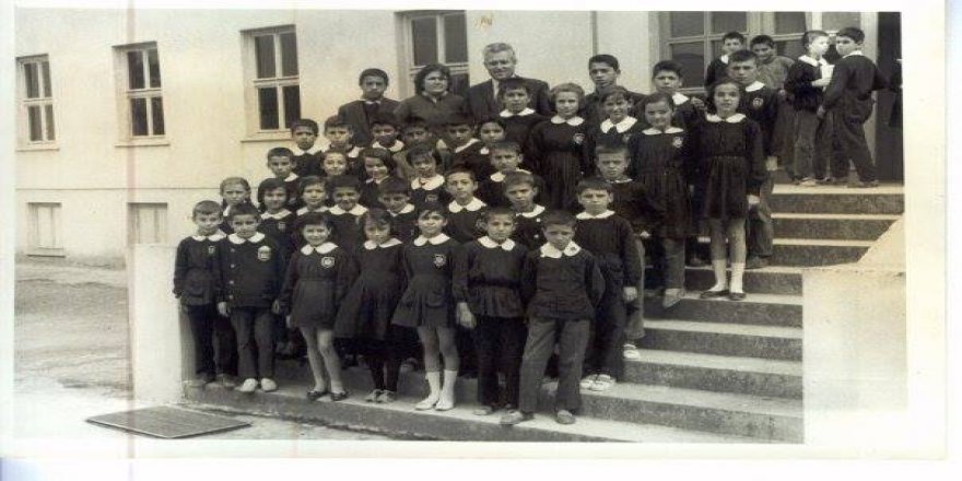 1966 yılına ait fotoğrafta Gebze’de Merkez İlkokulu önünde öğretmenler Yıldız Aydın ve Haydar Aydın öğrencileriyle bu fotoğrafı çektirmişler.