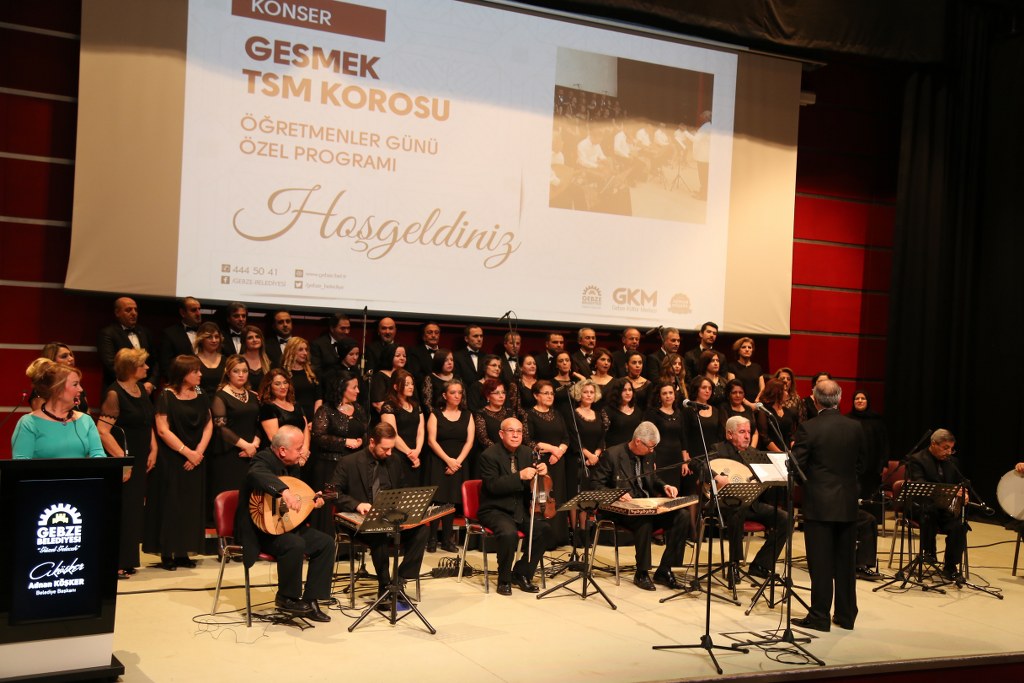 Gebze Belediyesi kültür-sanat etkinlikleri kapsamında GESMEK TSM Korosu Gebzelilere muhteşem bir konser verdi. GESMEK TSM Korosu 15 Temmuz Milli İrade Kent Meydanında bulunan kültür merkezi salonunu dolduran Gebzelilere tadına doyumsuz bir Türk Sanat Müziği akşamı yaşattı. Öğretmenler gününe özel düzenlenen GESMEK TSM konseri koro şefi Erbil Aydın şefliğinde gerçekleşti. İlçe Milli Eğitim Müdürü Şener Doğan’ında katıldığı GESMEK TSM konseri dinleyiciler tarafından uzun süre ayakta alkış aldı. Gebze kültür-sanat etkinlikleri 28 Kasım Salı günü Musa Yaşaroğlu’unun “Canım Öğretmenim” isimli söyleşi, şiir ve konser programı ile devam edecek. Saat 19:00’da başlayacak olan programa tüm Gebzeliler davetli.