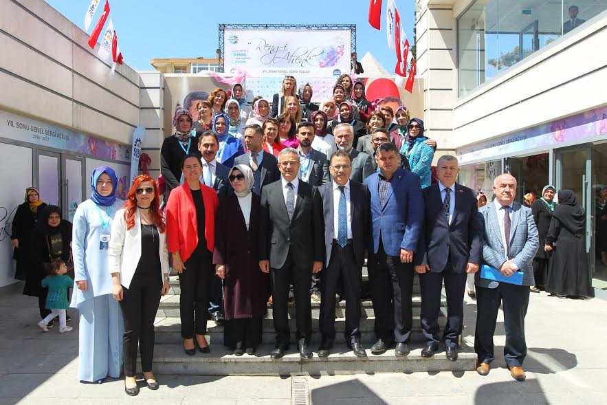 Konuşmaların ardından protokol üyeleri, 8 kurs merkezinden 4000 kursiyerin el emeği göz nuru olan 4700 farklı eserinin sergilendiği “Reng-i Ahenk” isimli yılsonu sergisinin açılış kurdelesini birlikte kesti. GESMEK kursiyerlerinin sekiz aylık çalışmalarının sonucu olan eserler oldukça beğenildi. Eserler hakkında kursiyerlerden bilgi alan protokol üyeleri sergiyi gezdikten sonra GESMEK kursiyerleri ve hocalar ile hatıra fotoğrafı çektirdi.