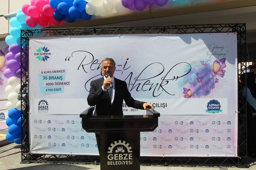 Yılsonu sergi açılışında kısa bir selamlama konuşması gerçekleştiren Gebze Belediye Başkanı Adnan Köşker, “Gebze her geçen gün gelişiyor, güzelleşiyor. Gebze artık insanların yaşamak zorunda olduğu için yaşadığı bir şehir değil yaşamaktan keyif aldığı bir şehir. Gebze kent bilincinin oluştuğu bir şehir haline geldi. İstanbul’a yakınlığı ve konum olarak çok değerli bir bölgede yaşıyoruz. Böylesine önemli bir konumda yaşarken eğitimimizde büyük önem vermeliyiz. Ben inanıyorum ki bu kursa başlayan kursiyerlerimizin ilk günkü düşünceleri ile bugünkü düşünceleri çok farklı.