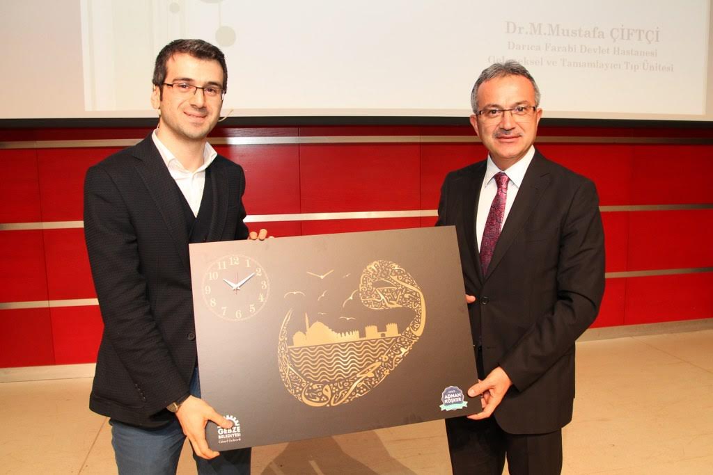Gebze Belediyesi kültür-sanat etkinlikleri kapsamında Dr. M. Mustafa Çiftçi, ‘Geleneksel Tıp Yöntemlerinden Akupunktur’ konulu bir konferans verdi. Konferansın açılışında kısa bir selamlama konuşması yapan Gebze Belediye Başkanı Adnan Köşker, “Her şeyin başı sağlık ve bizler sizlerin sağlığını önemsiyoruz” dedi. 15 Temmuz Milli İrade Kent Meydanında bulunan kültür merkezi salonunda gerçekleşen konferansa Gebze Belediye Başkanı Adnan Köşker, Başkan Yardımcısı Sadık Albayrak, TÜGVA Gebze ilçe temsilcisi H. İbrahim Dede ve çok sayıda Gebzeli katıldı. Programın başında TÜGVA Gebze İlçe temsilcisi H. İbrahim Dede kısa bir konuşma gerçekleştirdi. Dede konuşmasında TÜGVA ve faaliyetleri hakkında bilgi verdi. Programın açılışında konuşan Gebze Belediye Başkanı Adnan Köşker, “Her şeyin başı sağlık ve bizler sizlerin sağlığını önemsiyoruz. Sağlıklı bir toplum sağlıklı fertlerden oluşur. Özelikle Gebze Belediyesi olarak bayanların daha sağlıklı olmaları noktasında birçok projeye imza atıyoruz.” dedi. Başkan Köşker konuşmasının sonunda Dr. M. Mustafa Çiftçi’ ye hediye takdiminde bulundu.