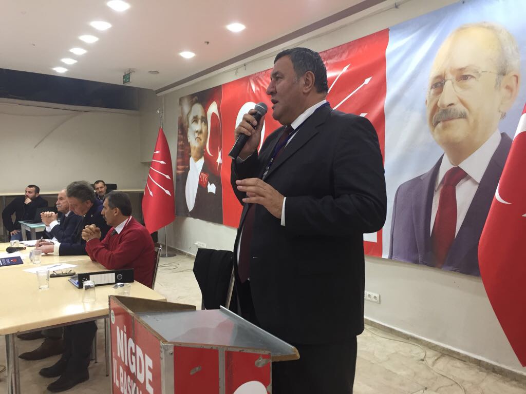 Elinizi vicdanınıza koyun da sorun bunlara; Niğde’ye ne yaptılar? Bizim Türkiye için, Niğde için yapacaklarımız var. Partimizin geleceğinin sorunsuz olmasının yolu da sizlerin bu emeklerini bütünleştirip, birleştirip mücadeleyi yükseltmekten geçiyor. "Dedi.Gürer konuşması sık sık alkışlarla kesildi.yaptığı kongrede, mevcut il başkanı Erhan Ademve Tevfik Caymaz yarıştı. Adem, yeniden CHP Niğde İl Başkanı oldu.