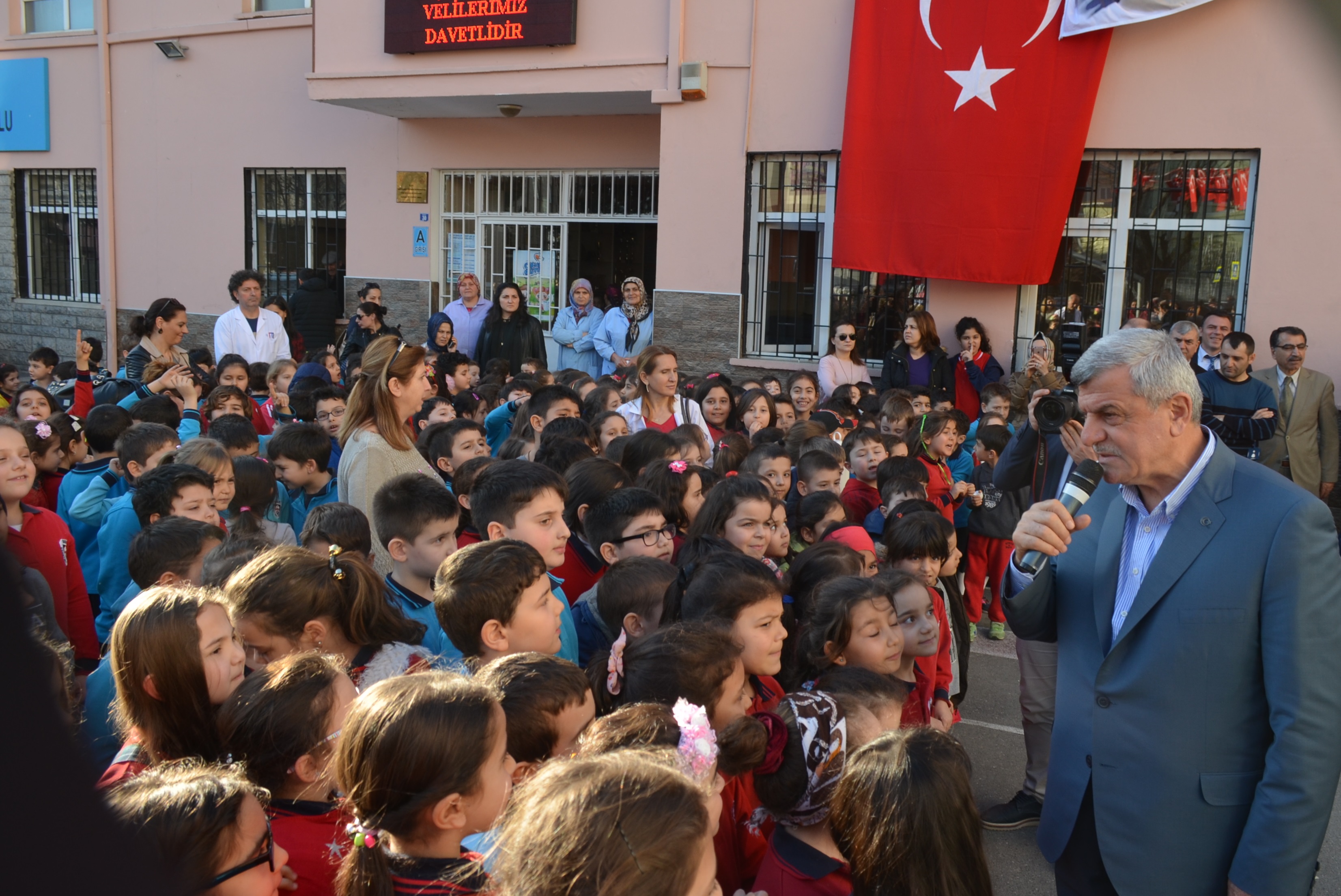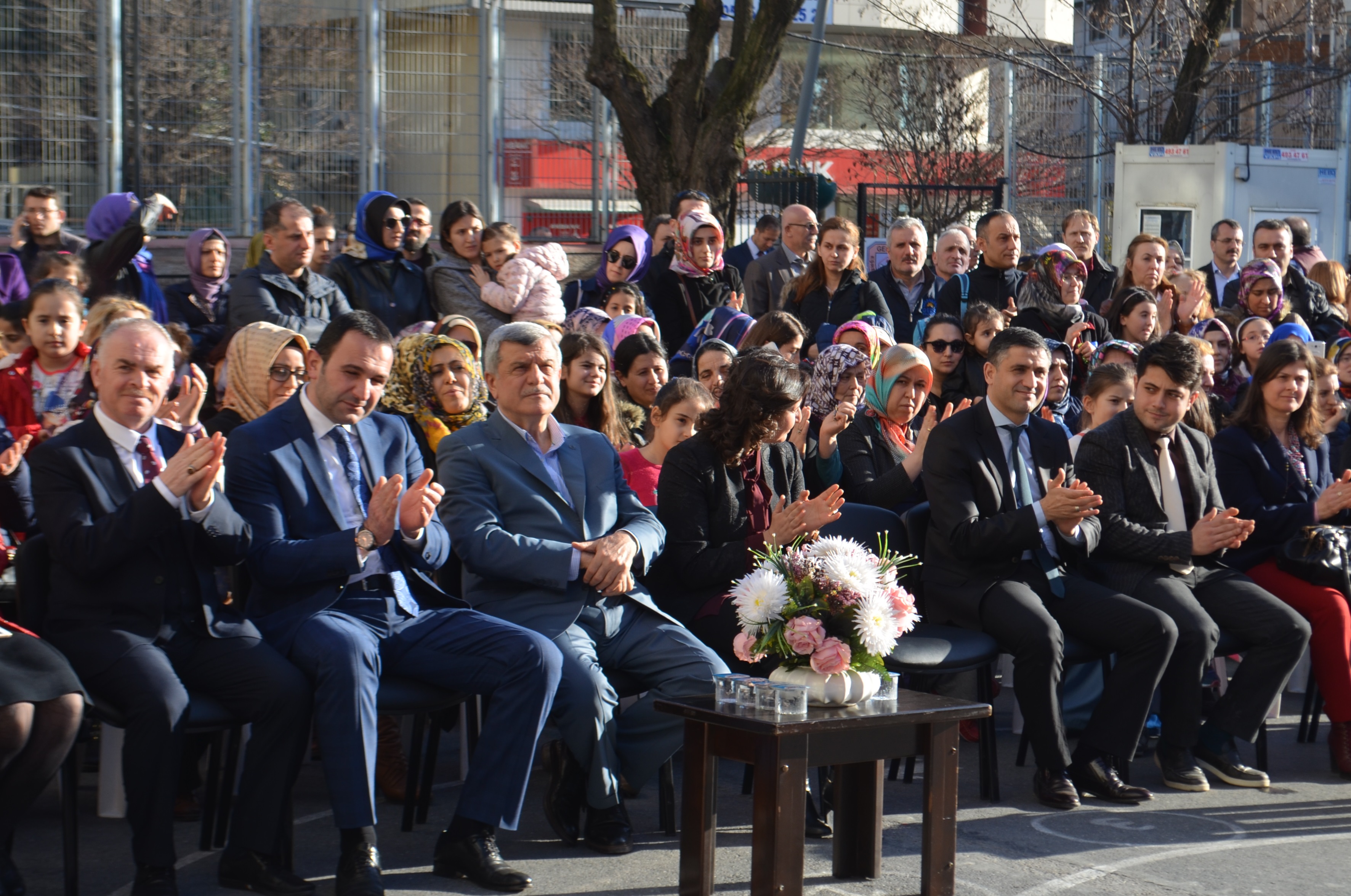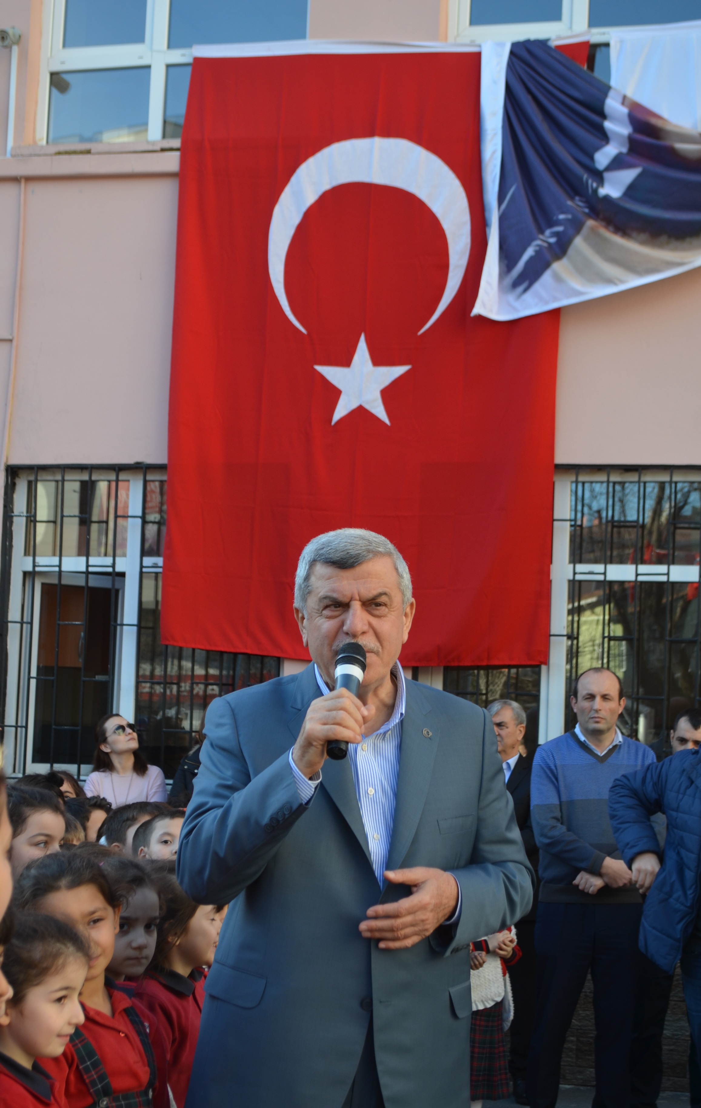 Kocaeli Büyükşehir Belediye Başkanı İbrahim Karaosmanoğlu yaptığı açılış konuşmasını çocukların yanına giderek yaptı. Çocuklar bizim geleceğimiz onları yetiştiren annelerde her şeyimiz. Spor salonu hayır olsun’ diye konuştu