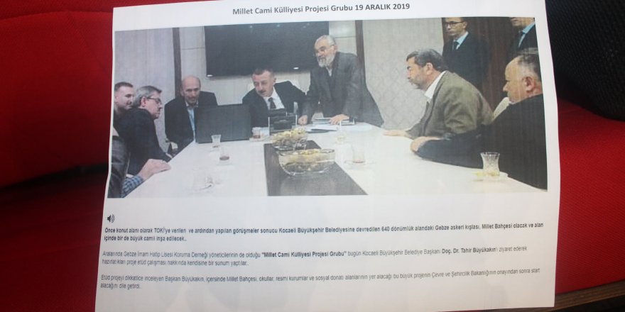Aralarında Gebze İmam Hatip Lisesi Mezunları Derneği yöneticilerinin de olduğu, “Millet Camii Külliyesi Projesi Grubu” bugün (19 Aralık 2019) Kocaeli Büyükşehir Belediye Başkanı Tahir Büyükakın’ı ziyaret ederek hazırlattıkları proje etüd çalışması hakkında kendisine bir sunum yaptılar.