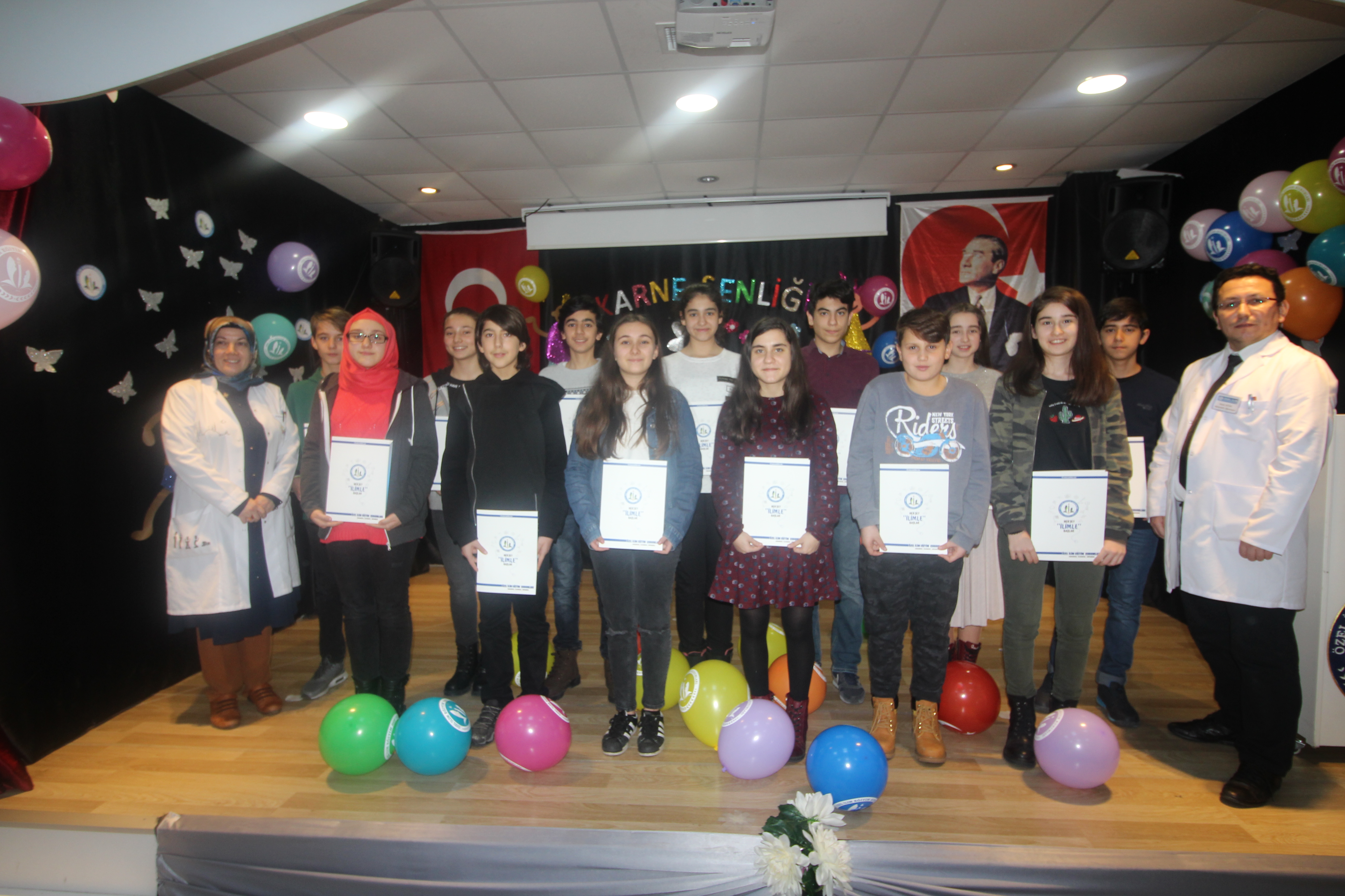 04.01.2018 Tarihinde Türkiye geneli yapılan sınavda Özel İlim Ortaokulu 5. Sınıflar il ve ilçede 1(birinci), 6.sınıflar il ve ilçede 1(birinci), 7. Sınıflar ilçede 1(birinci), ilde 5(beşinci), 8. Sınıflar ilçede 1(birinci), ilde 2(ikinci) oldu. Ayrıca 7 İlim’li öğrenci Türkiye 1. si oldular. Okul Rehber Öğretmeni Merve Karakuş, ‘’Öğrencilerimize verimli ders çalışma planlarını hazırlamayı öğretiyor, eksik konuları için etüt programları uyguluyoruz ve takibini yapıyoruz. Sınavda öğrencilerimiz çalışmalarının meyvelerini topluyorlar, hepsini tebrik ediyorum.’’ Dedi. Başarının hiçbir zaman tesadüf olmadığını söyleyen Okul Müdürü Halil Bulut, ‘’Bu sonuçları elde edebilmek için öğretmenlerimiz sistemli ve ilk gün ki heyecanlarıyla çalışmaktadırlar.’’ Dedi.