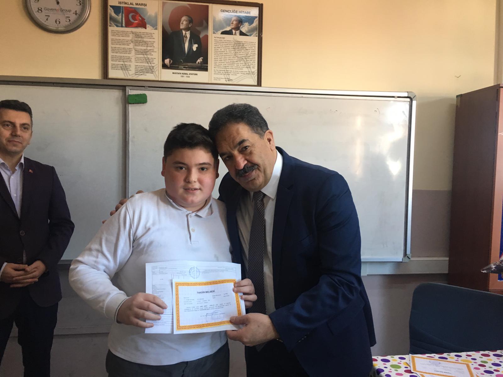 2018-2019 eğitim ve öğretim yılının ilk yarıyılın tamamlanması nedeniyle Gebze’de dün karne dağıtım töreni düzenlendi. 50. Yıl Chrysler Ortaokulunda gerçekleşen törene Kaymakam Mustafa Güler, İlçe Milli Eğitim Müdürü Şener Doğan, şube müdürleri, okul yö