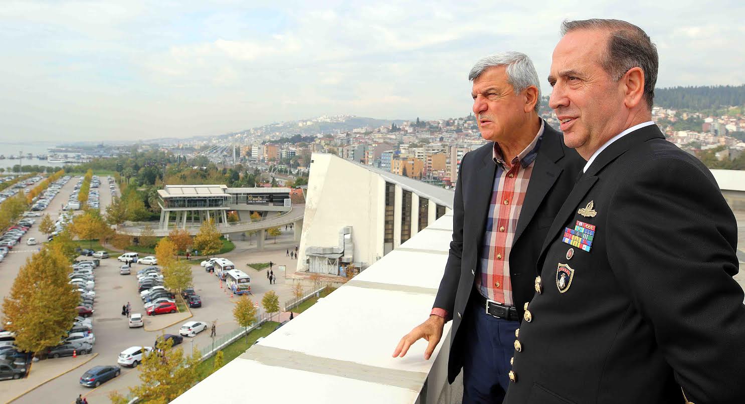 Kocaeli Büyükşehir Belediyesi hizmet binasının terasından İzmit Sahili hakkında Donanma Komutanı Koramiral Ercüment Tatlıoğlu’na bilgi veren Karaosmanoğlu, Büyükşehir Belediyesi’nin Yaklaşık 3 500 araç kapasiteli ücretsiz otoparkın İzmit merkezi için ne kadar önemli olduğundan da bahsetti. Kocaeli ve Büyükşehir Belediyesi’nin hizmetleri hakkında bilgi vermeyi de ihmal etmeyen Karaosmanoğlu, “Kocaeli her gün gelişen ve güzelleşen bir kenttir. Vatandaşımızın mutluluğu ve huzuru için çalışıyoruz” dedi.