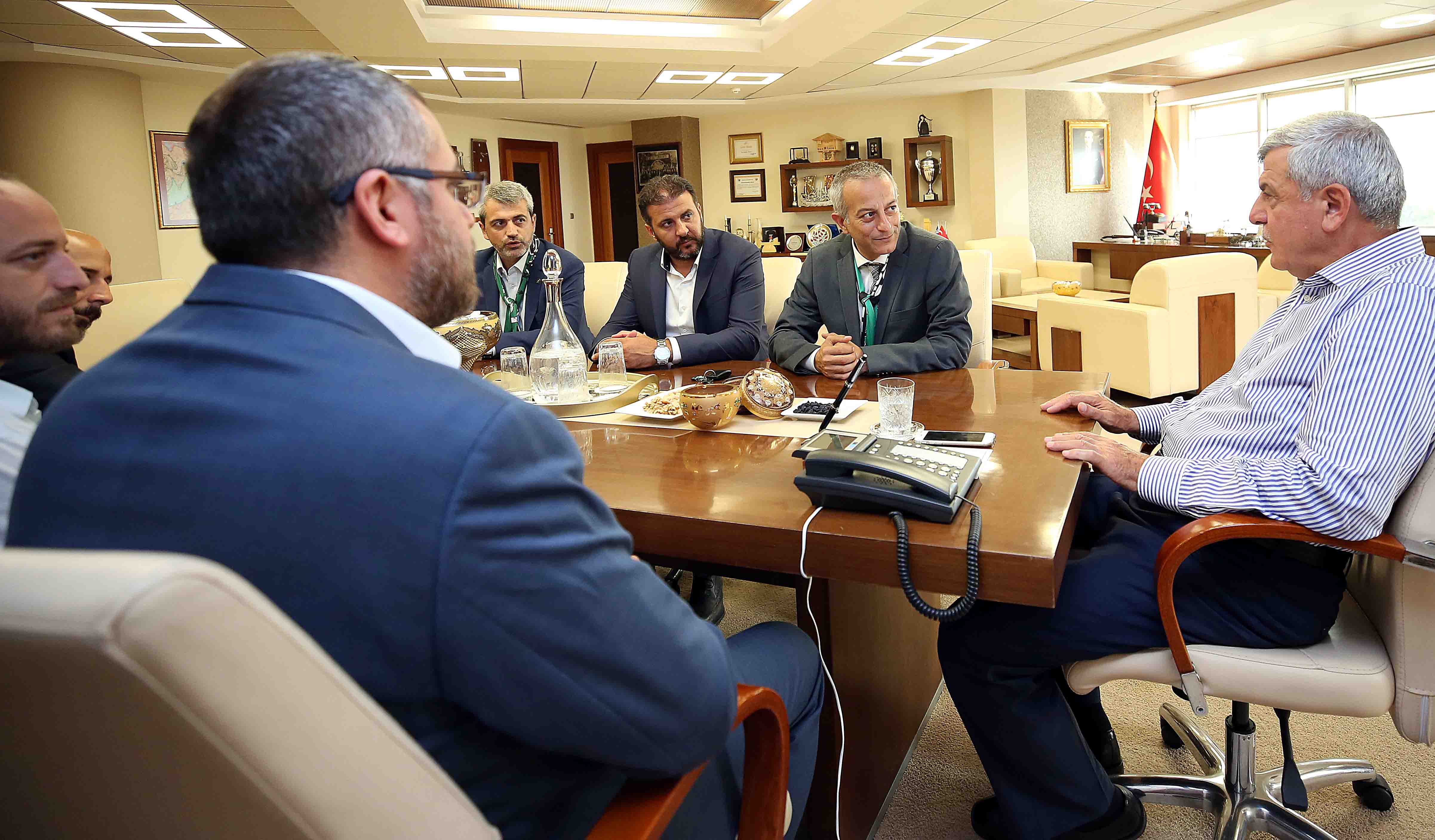 Türk Dünyası Belediyeler Birliği (TDBB) ve Kocaeli Büyükşehir Belediye Başkanı İbrahim Karaosmanoğlu, Kocaelispor Kulüp Başkanı Bahri Yavuz ve yönetimini makamında kabul etti. Yurt içi ve dışında ki futbol sektörü üzerine değerlendirmelerin yapıldığı görüşmede, Türkiye’de ki futbol kulüplerinin gelecekte var olmasının gelir gider dengesine bağlı olduğu da bir kez daha vurgulandı. Kocaelispor markasının bu kentin bir değeri olduğunu belirten Başkan Karaosmanoğlu, “Kocaelispor’un başarısı beni mutlu eder. Kocaelispor başkanı Bahri Yavuz ve Yönetimini istikrarlı ve başarılı yönetimlerinden dolayı kutluyorum “dedi.
