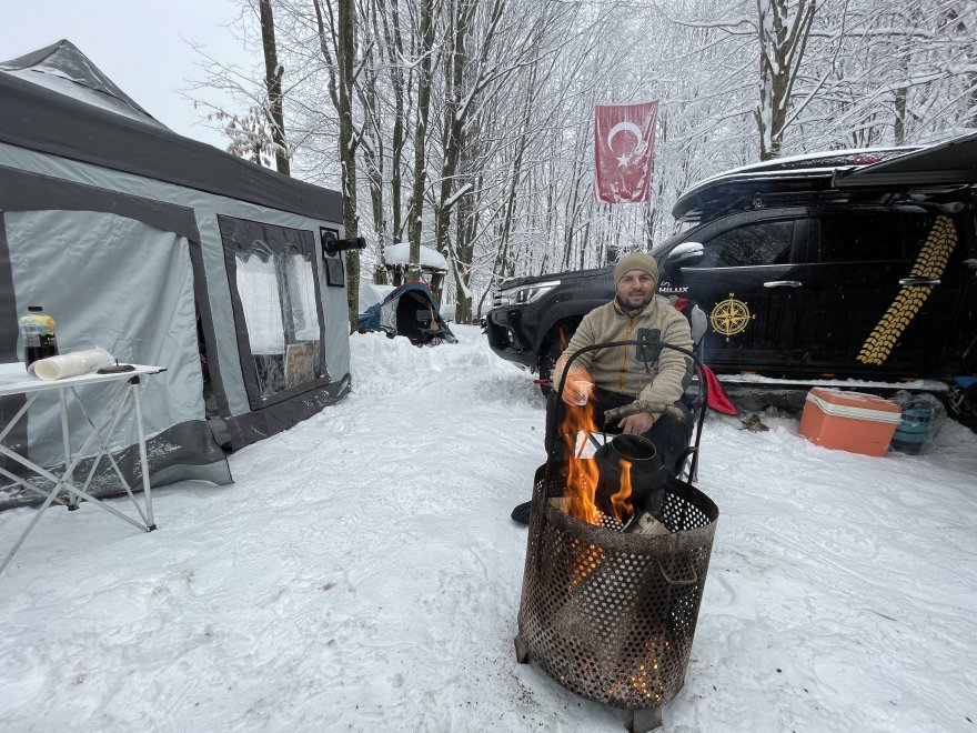 Arkadaşlarıyla İstanbul'dan gelen Gökhan Çelen, karda kamp yapmanın kendileri için çok daha keyifli olduğunu söyledi. Bölgenin doğasını çok beğendiğini dile getiren Çelen, "Sabah harika manzara eşliğinde uyanıyorsunuz, etraf bembeyaz kar. Karda yürüyorsunuz. O karda yürümenin verdiği haz tüm zorluklara değiyor" dedi. Hakan Demirdağ da İstanbul ve çevresinde karavanla kamp tecrübesinin olduğunu, kışın da bunu deneyimlemek istediğini anlattı. Karavandan çıktıktan sonra karla buluşmanın kendilerine büyük keyif verdiğini belirten Demirdağ, "Günübirlik buraya gelinebilir ama biz geceyi de deneyimlemek istedik. Karavanımız da tam donanımlı olduğu için üşümeden, gayet konforlu şekilde geceyi geçirdik" diye konuştu. Eşiyle Ayvazpınar'a gelen Ayşenur Denizli, İzmit'te yaşadığını, 1,5 yıldır ailesiyle karavan kampı yaparak büyük keyifle doğada zaman geçirdiklerini anlattı.